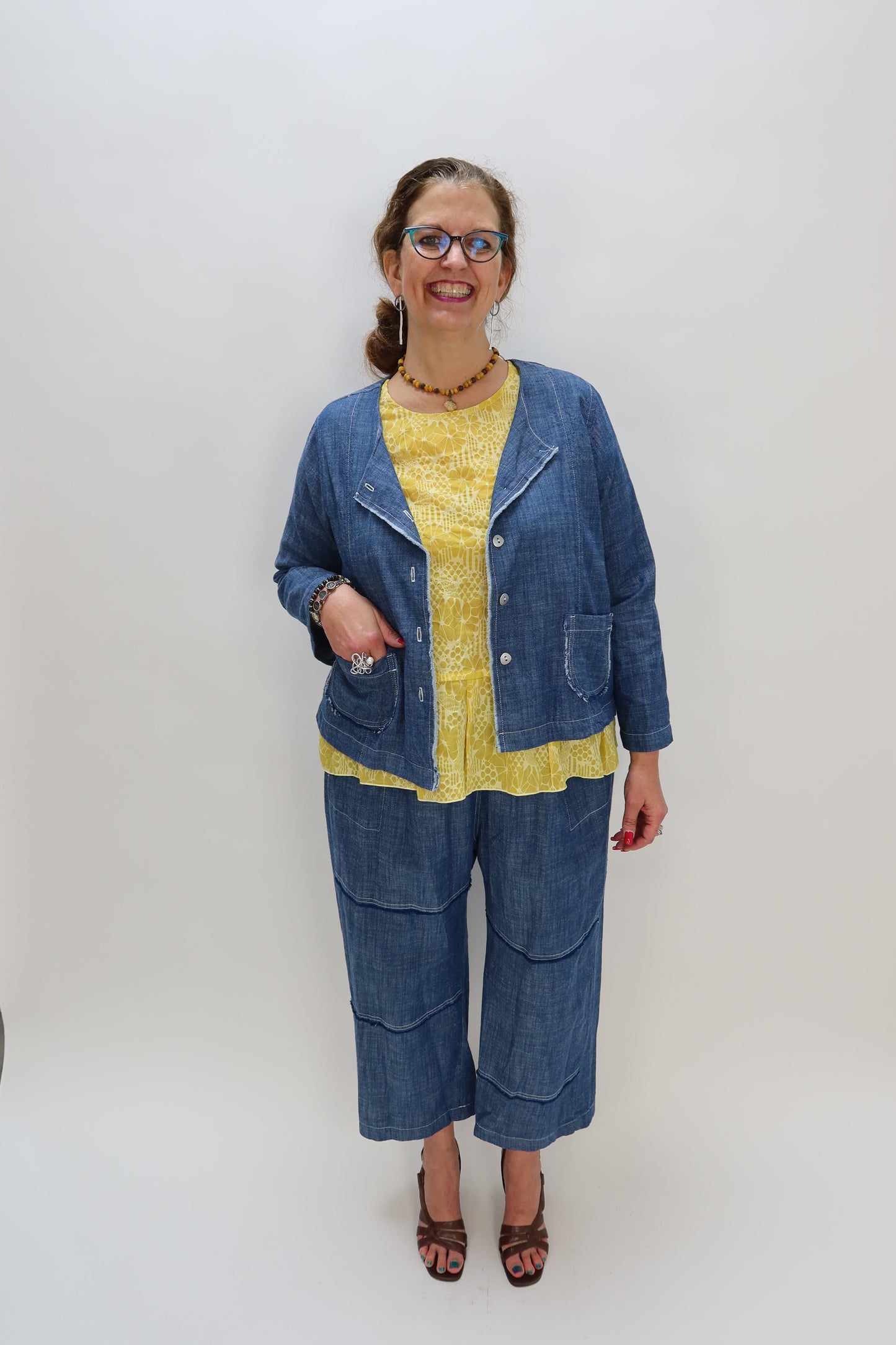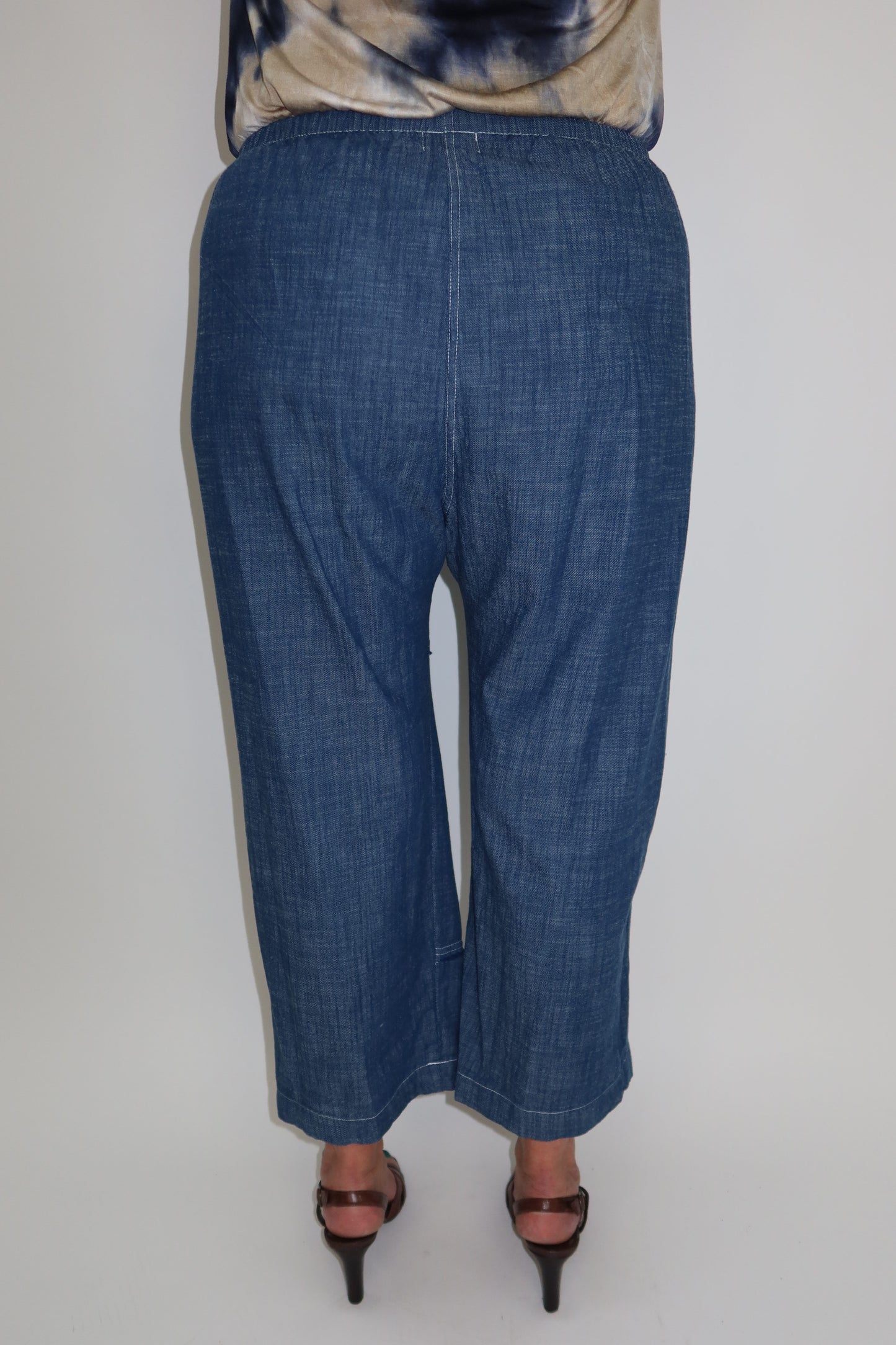 Raw Edge Fringe Crop Denim Chambray 100% Cotton Pants