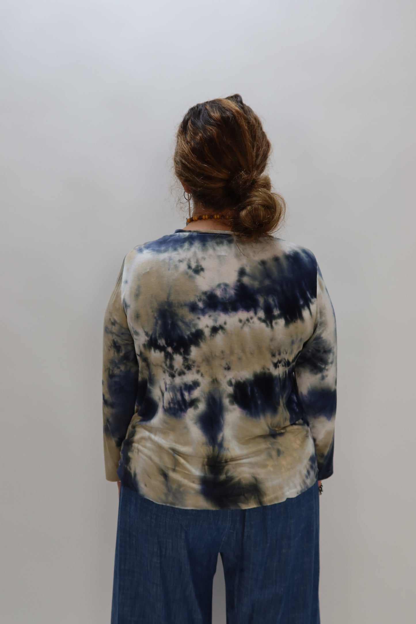 Tie Dye Modal Raw Edge Crew Neck Long Sleeve Top
