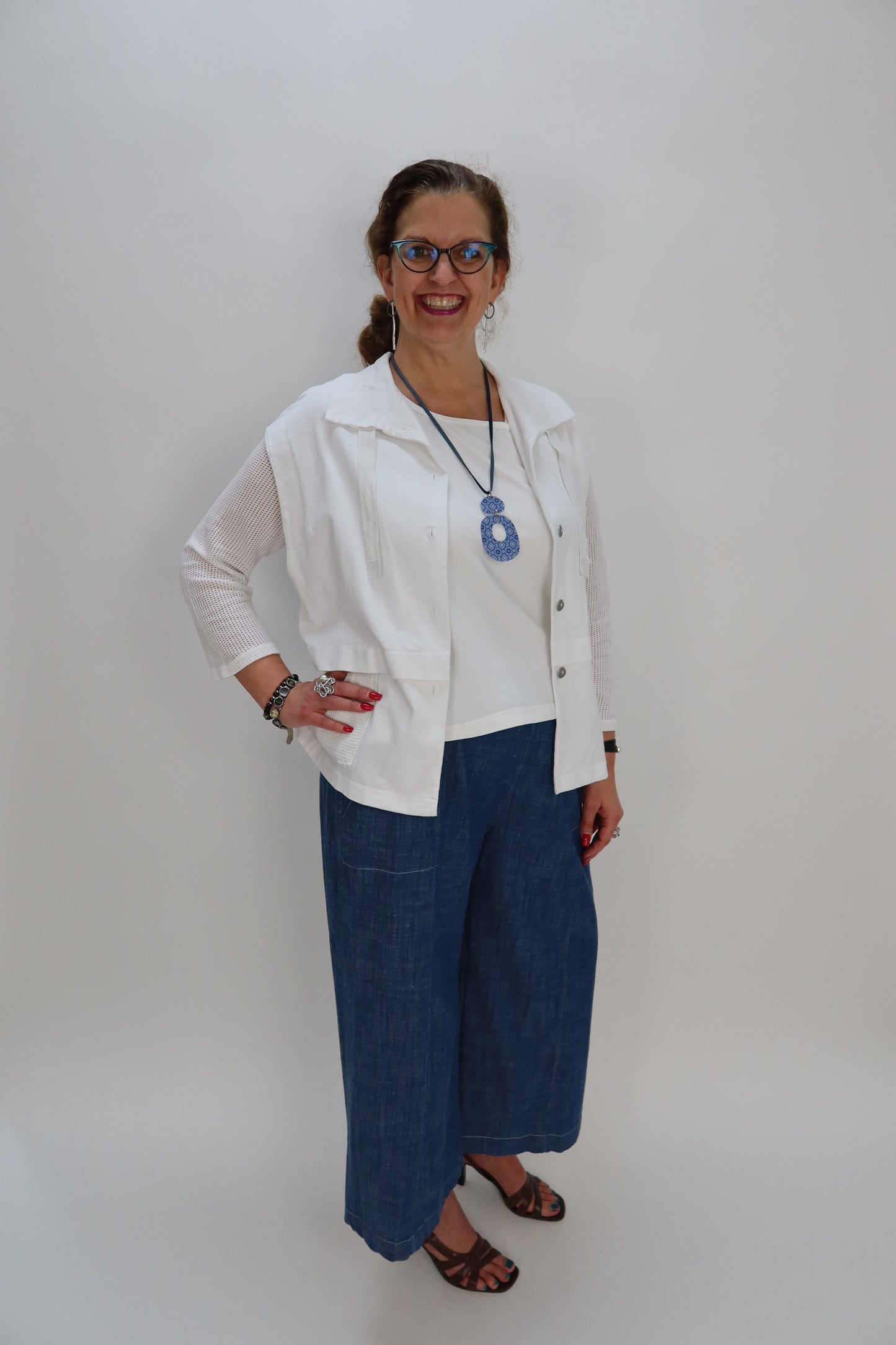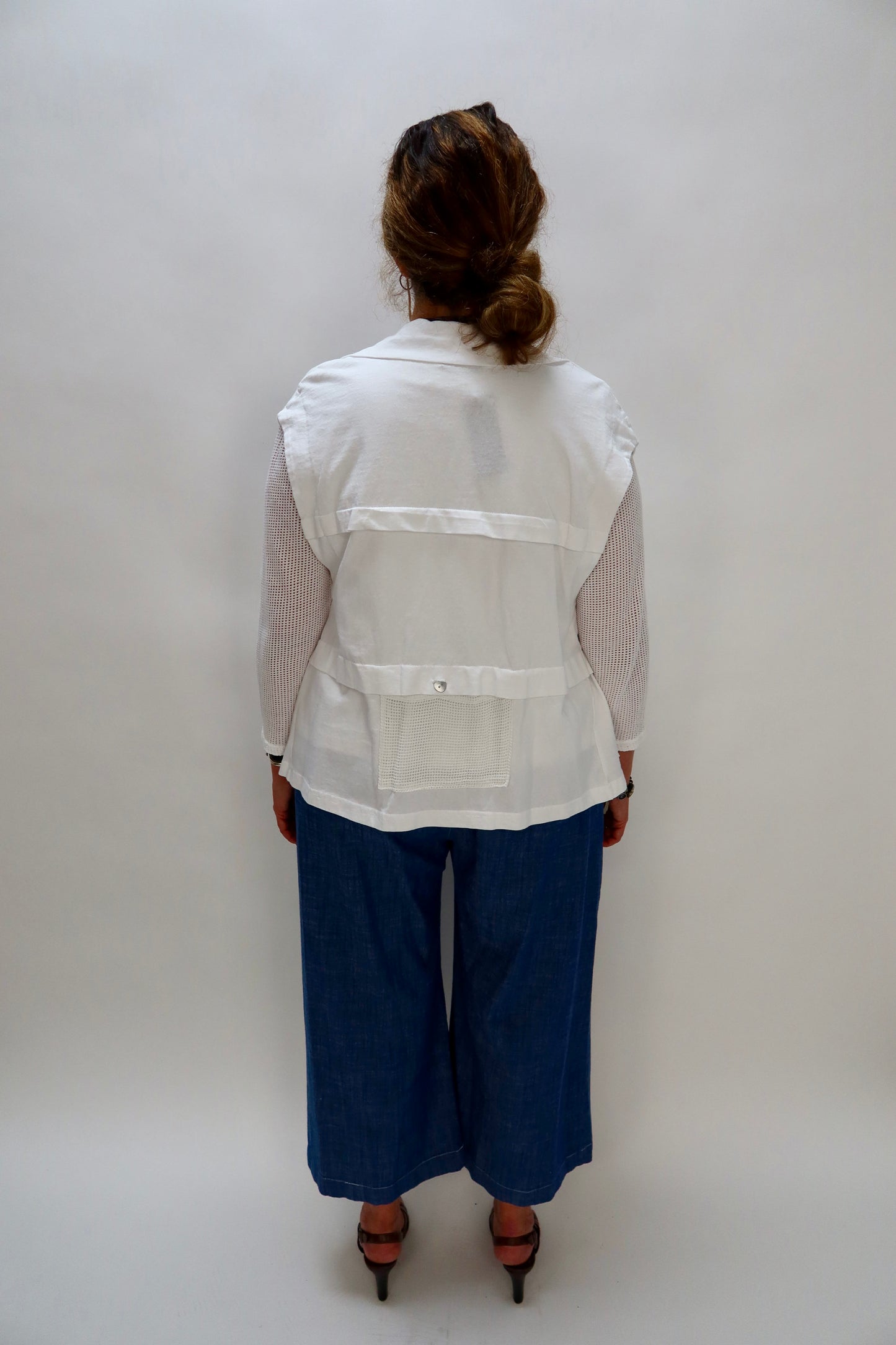White 100% Cotton Metal Button Down Vest