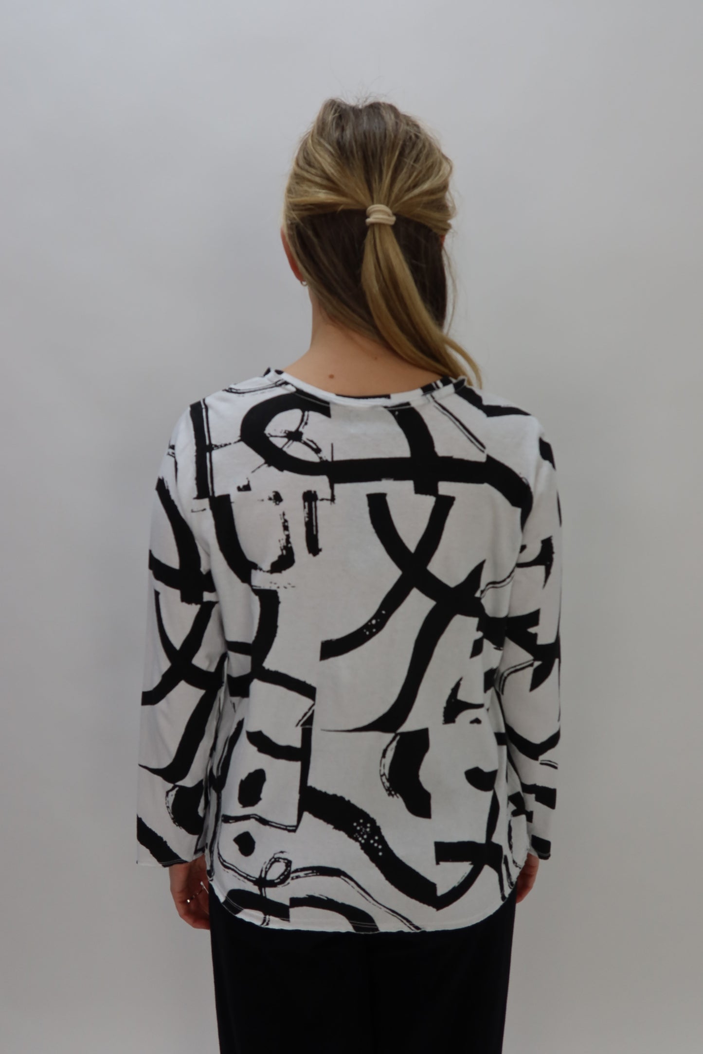 White and Black Pattern Asymmetrical Top
