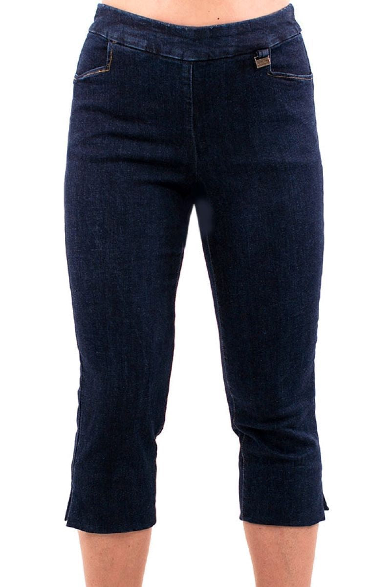 You'll love the stretchy denim feel of the Brianna capri jeans with front pockets and side slits at the hem. Designed to give you tummy support with a 2-inch elastic waistband. Denim never felt this good.