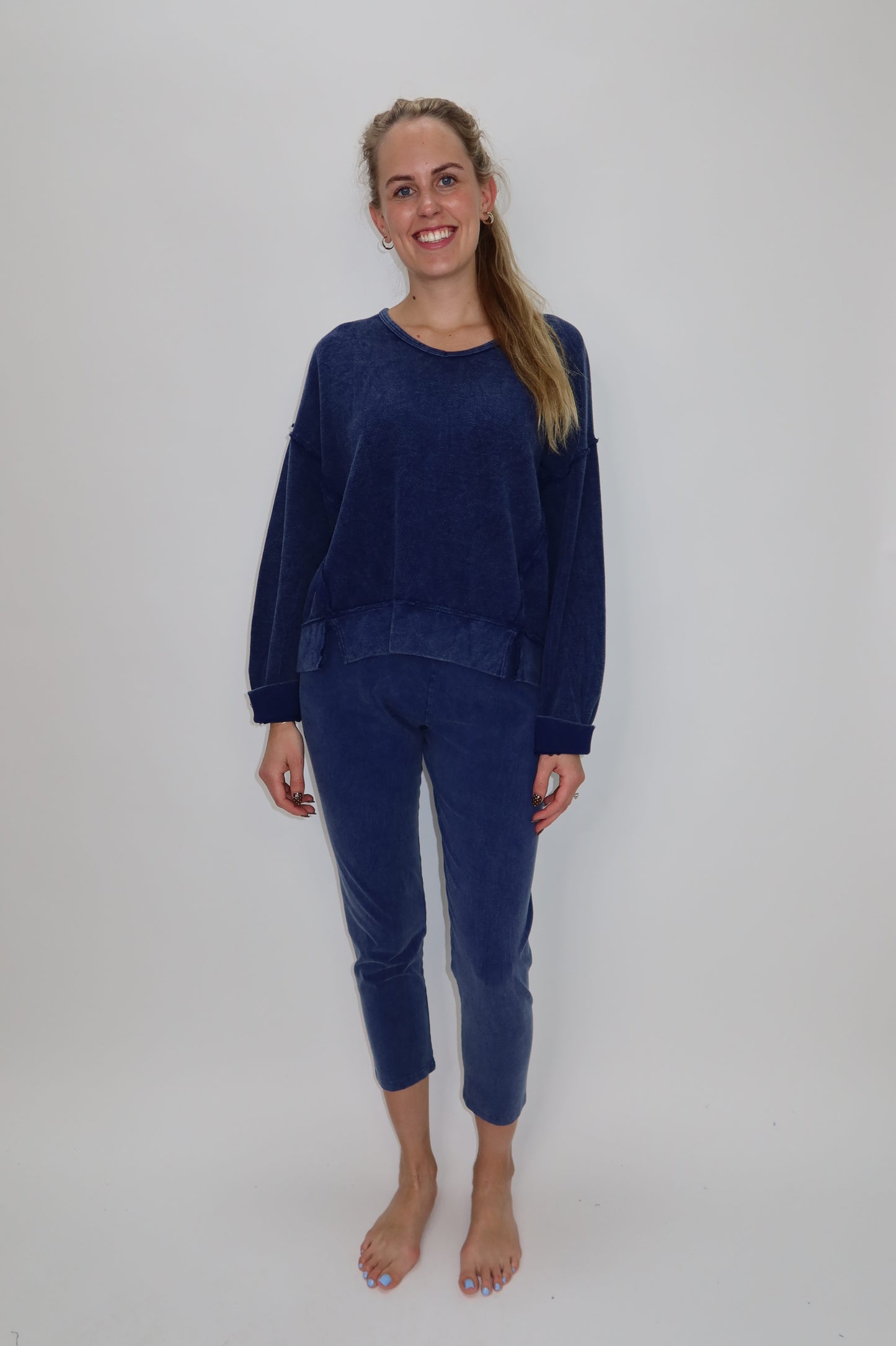 Experience unmatched comfort and style with our denim blue Pull On Capri Legging. Featuring a soft cotton blend and an easy elastic waistband, these pull-on capris offer a flattering fit with effortless wear. The versatile Blue hue adds a fresh, natural touch to your casual wardrobe. Perfect for everyday wear, these leggings provide breathable comfort and flexibility, whether you’re out running errands or relaxing at home.