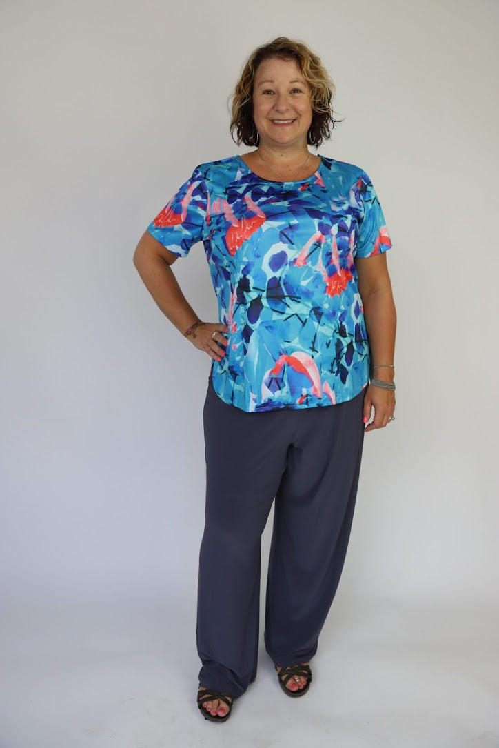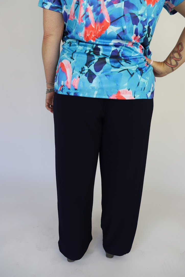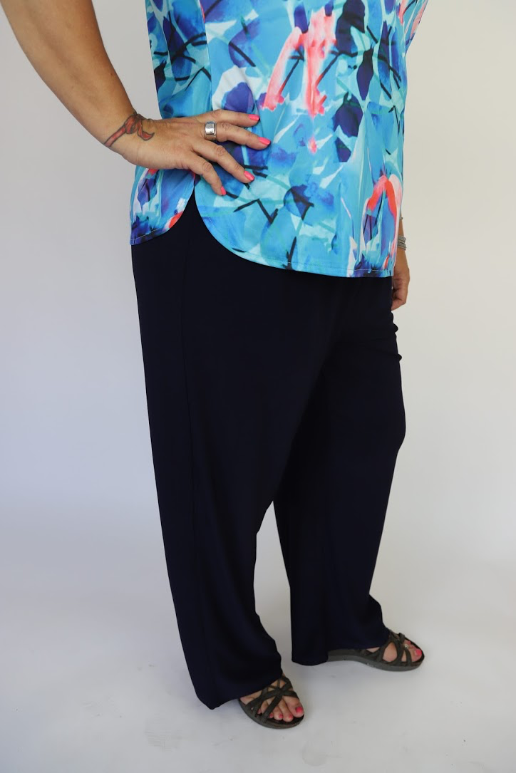 Comfortable pant with flat waistband.