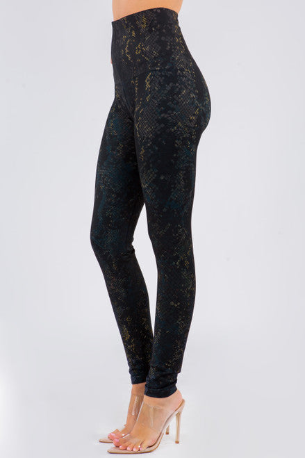B4292EZ High Waist Sublimation Full Length Animal Print Leggings - Peacock