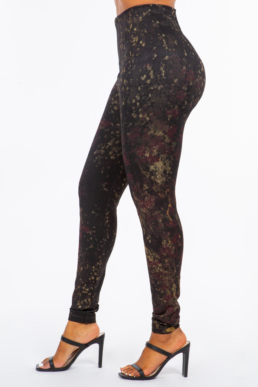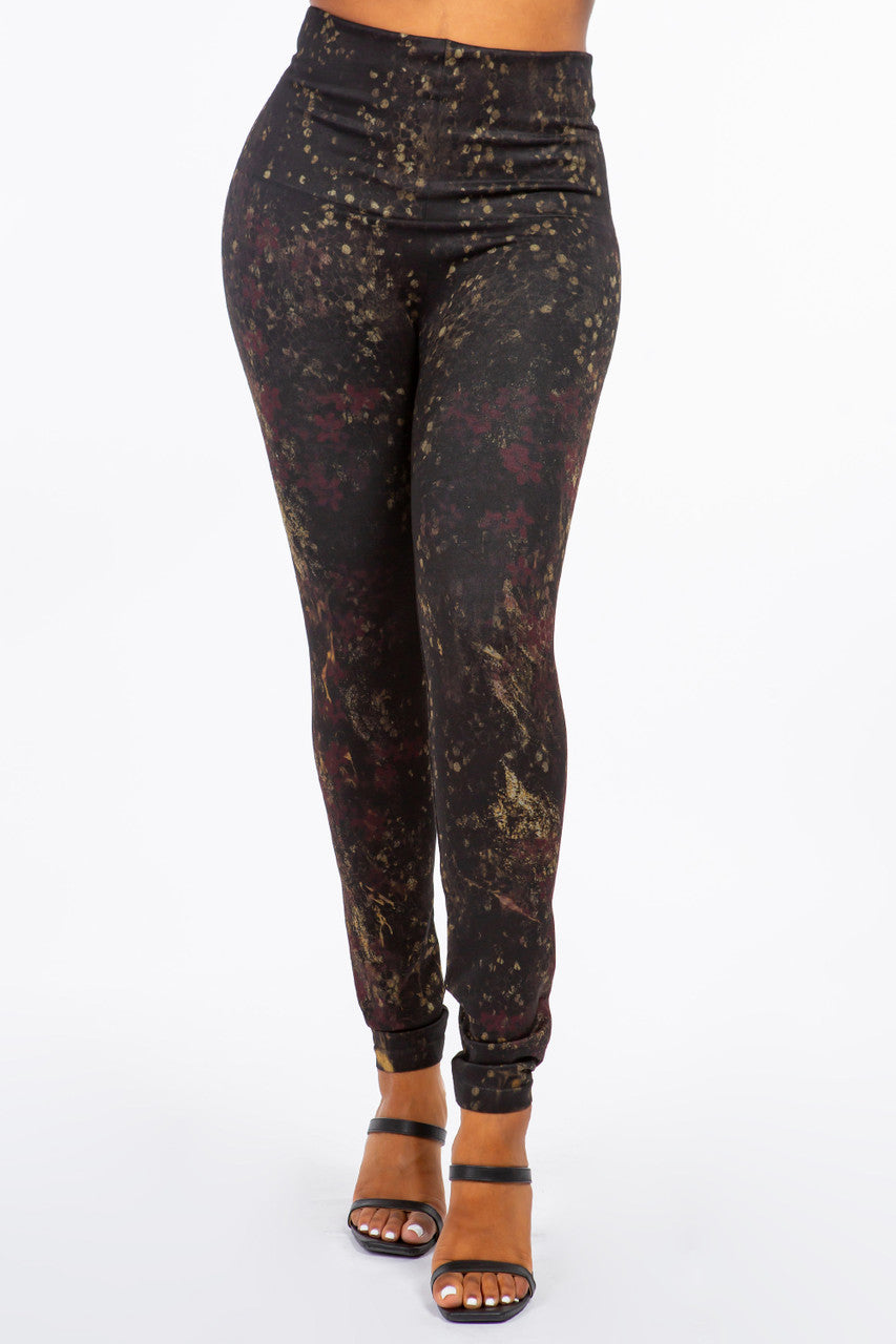 B4292FC High Waist Sublimation Full Length Burgundy Print Legging