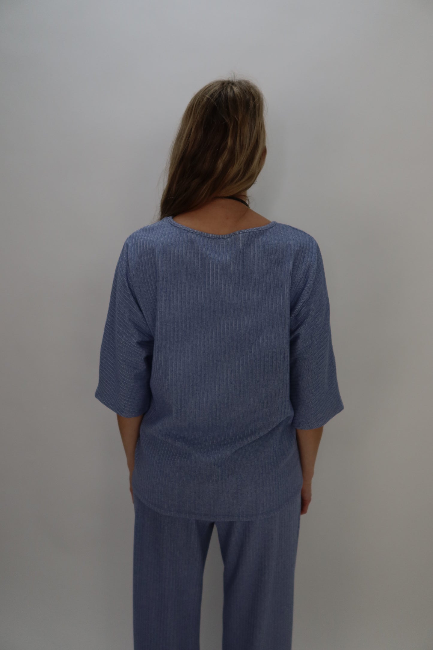 Blue Elbow Sleeve Ribbed Top