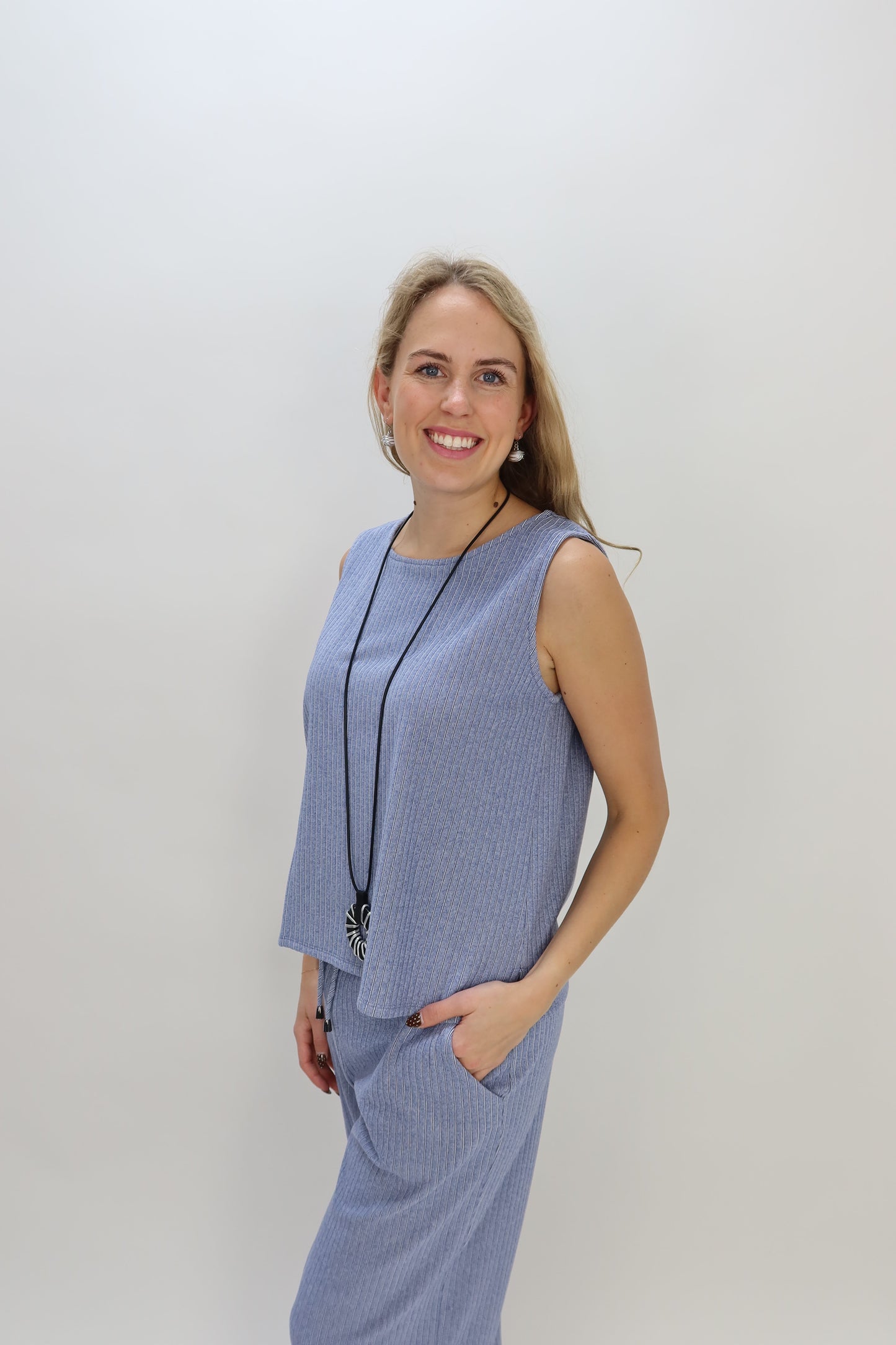 Blue Sleeveless Fleece Ribbed Top