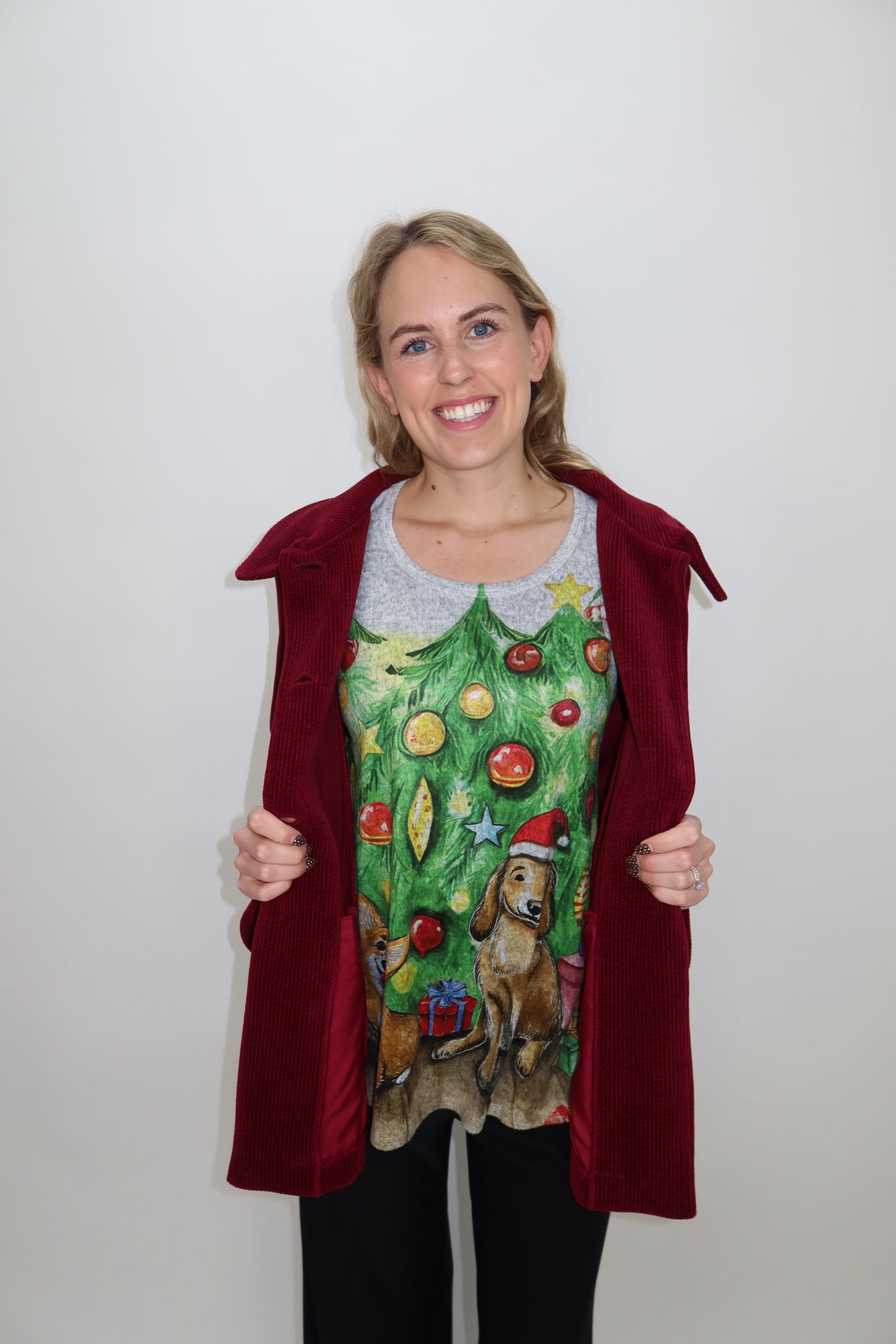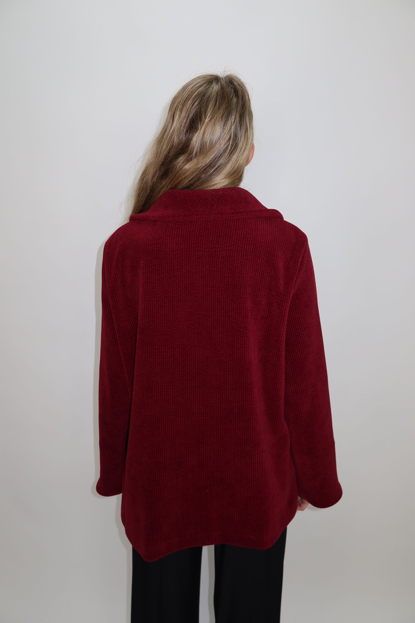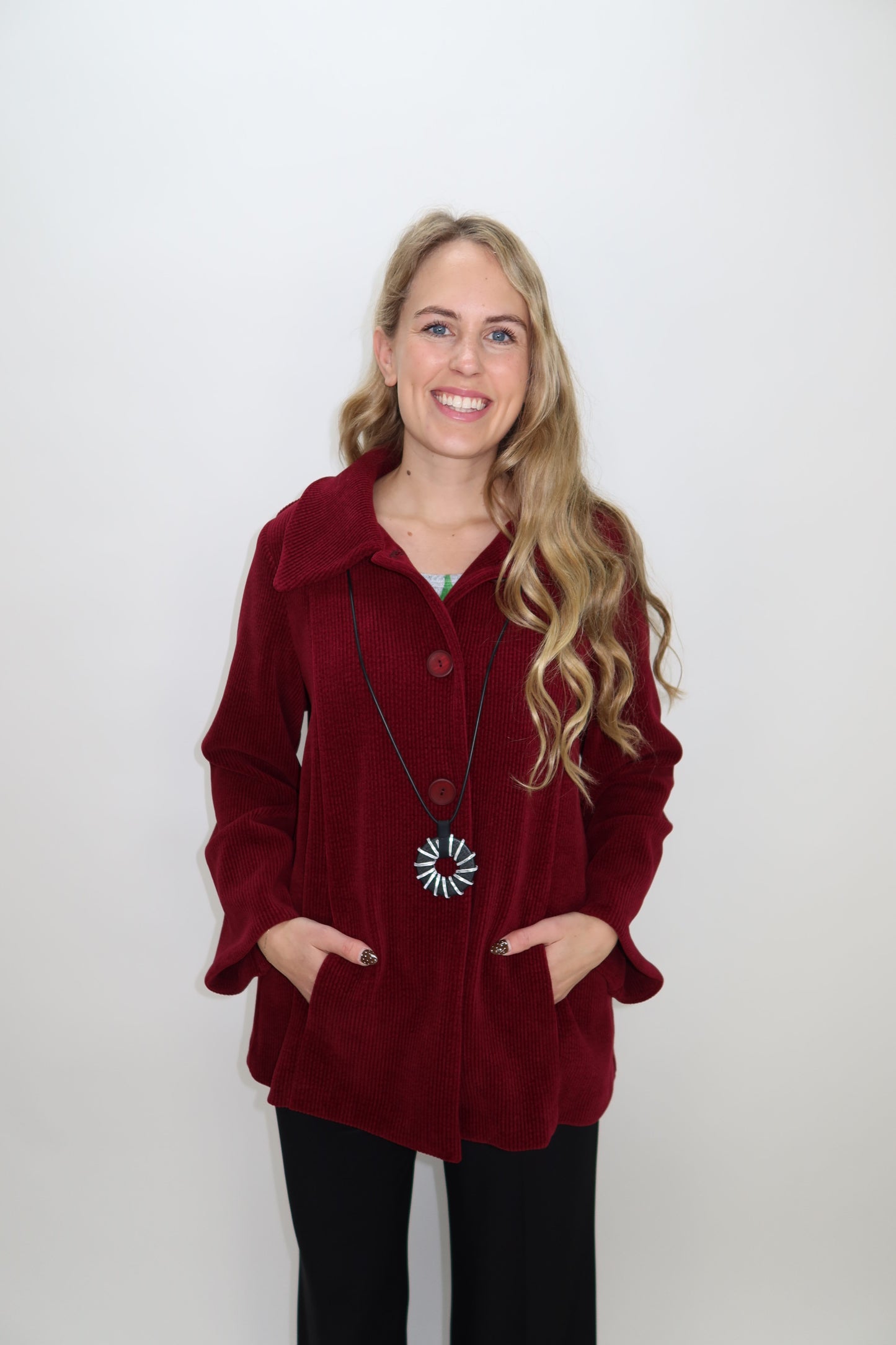 Burgundy Red Ribbed 3 Button Down Collared Jacket