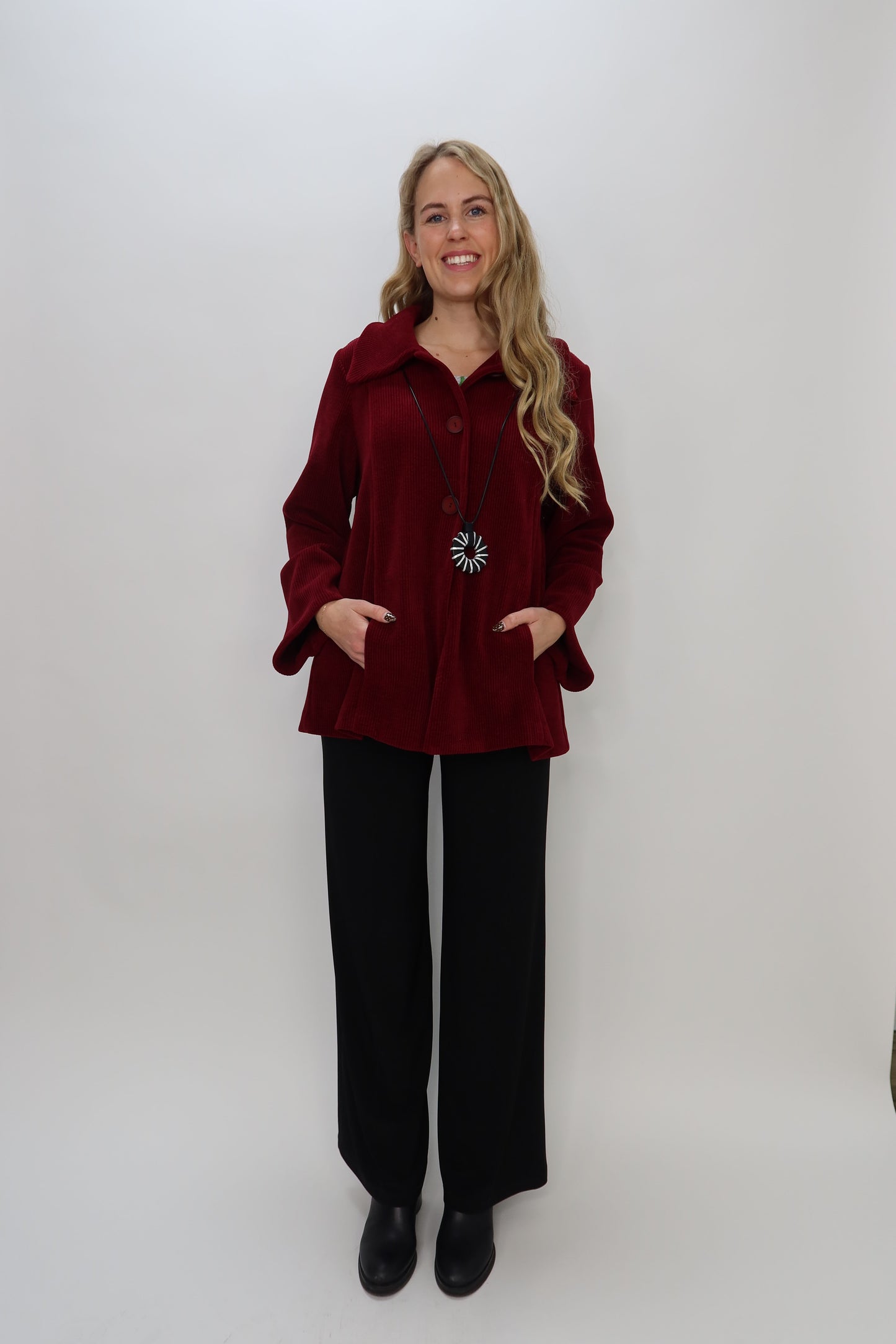 Wrap yourself in cozy comfort with our Burgundy Red Ribbed 3 Button Down Collared Jacket. Crafted from beautifully soft ribbed fabric, it's designed to keep you warm through fall and winter while turning heads with its adorable bright hue. The charming three front buttons and cute sleeve details add personality to an essential layering piece. Perfect for effortless style when temperatures drop.