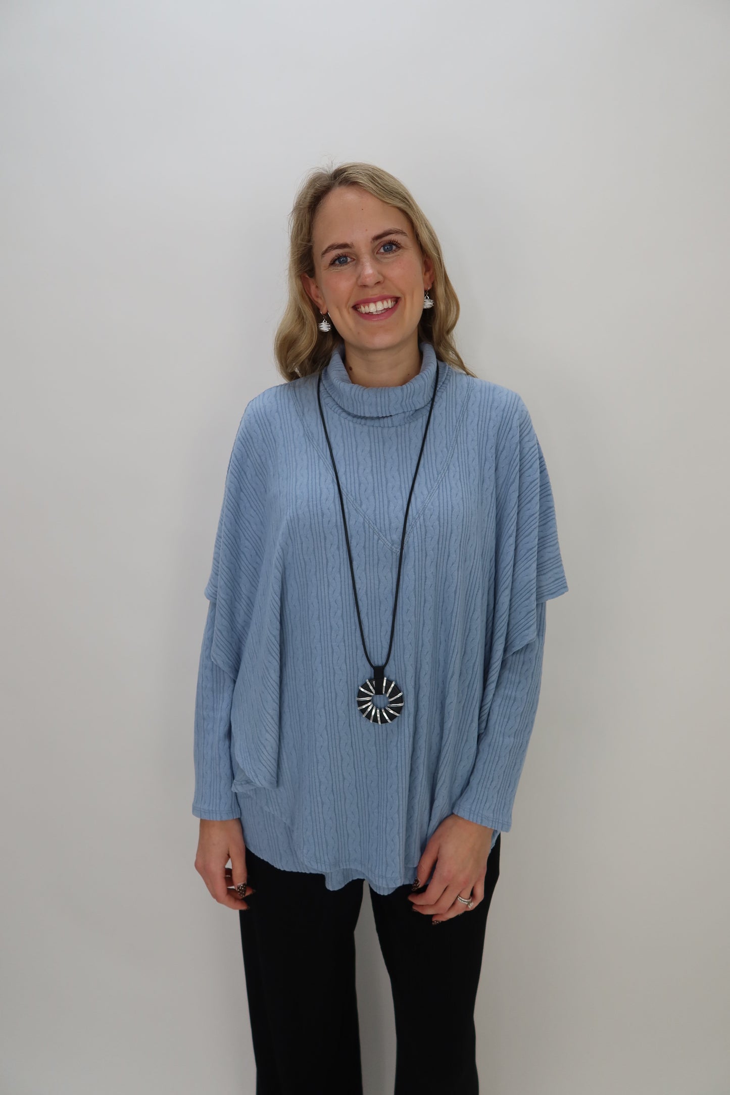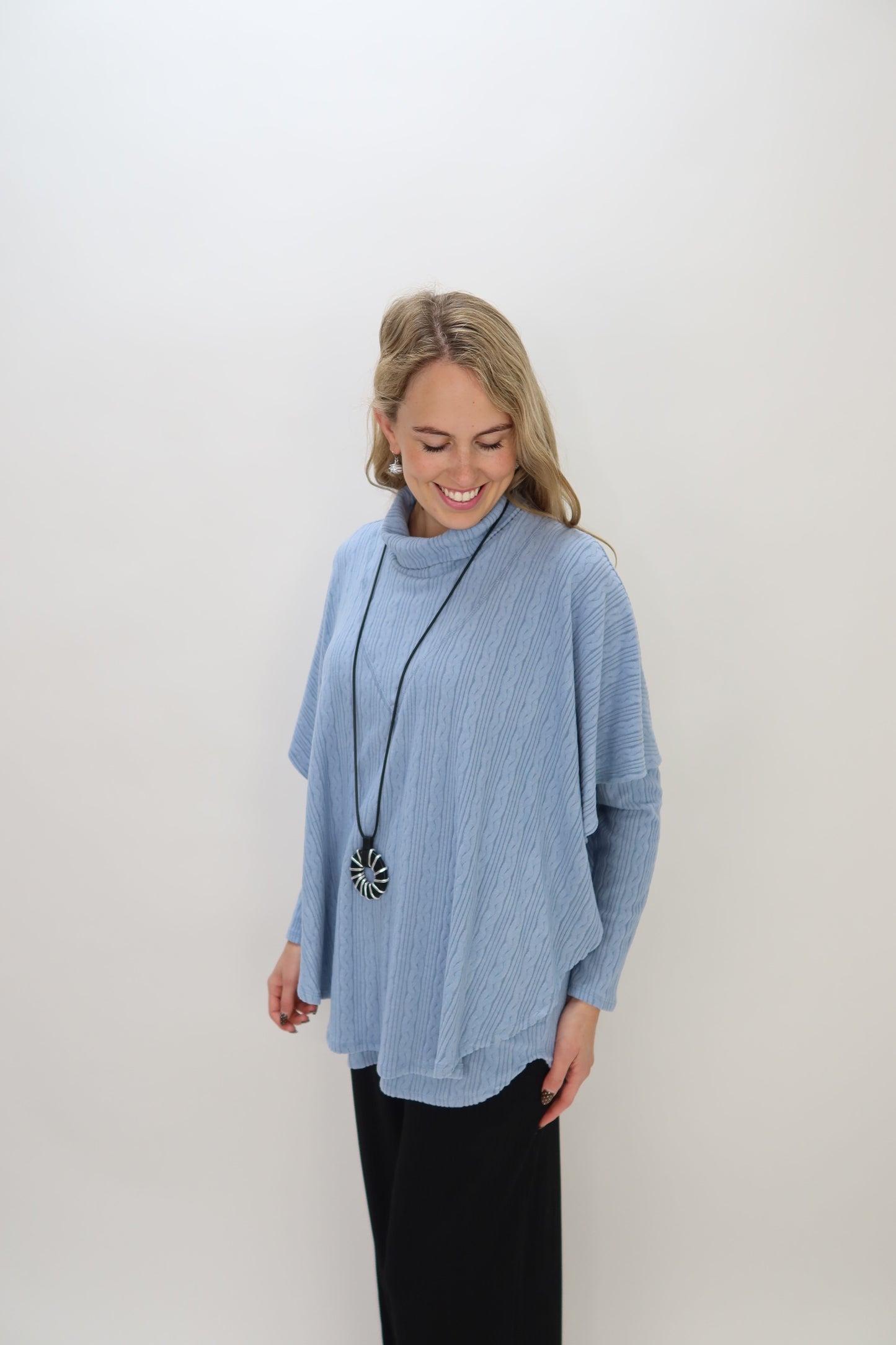 Transform your layering game with this Sky Blue Braided Texture Fleecy Shawl—the ultimate versatile essential. Drape it effortlessly over basic tees and tanks for instant dimension, or pair it with matching textured pieces for a coordinated, put-together look. The ultra-soft braided fabric feels incredible against your skin while adding visual interest to any outfit. Whether you're looking to stay warm, add depth to your ensemble, or create a polished layered aesthetic, this shawl delivers on all fronts. It's the one piece that works harder than you'd expect, making it a must-have for any wardrobe.