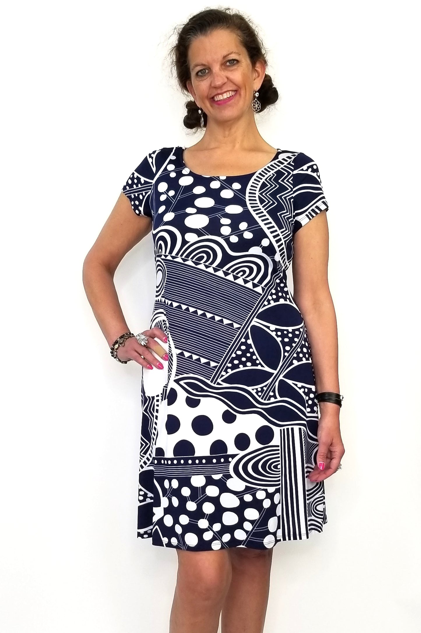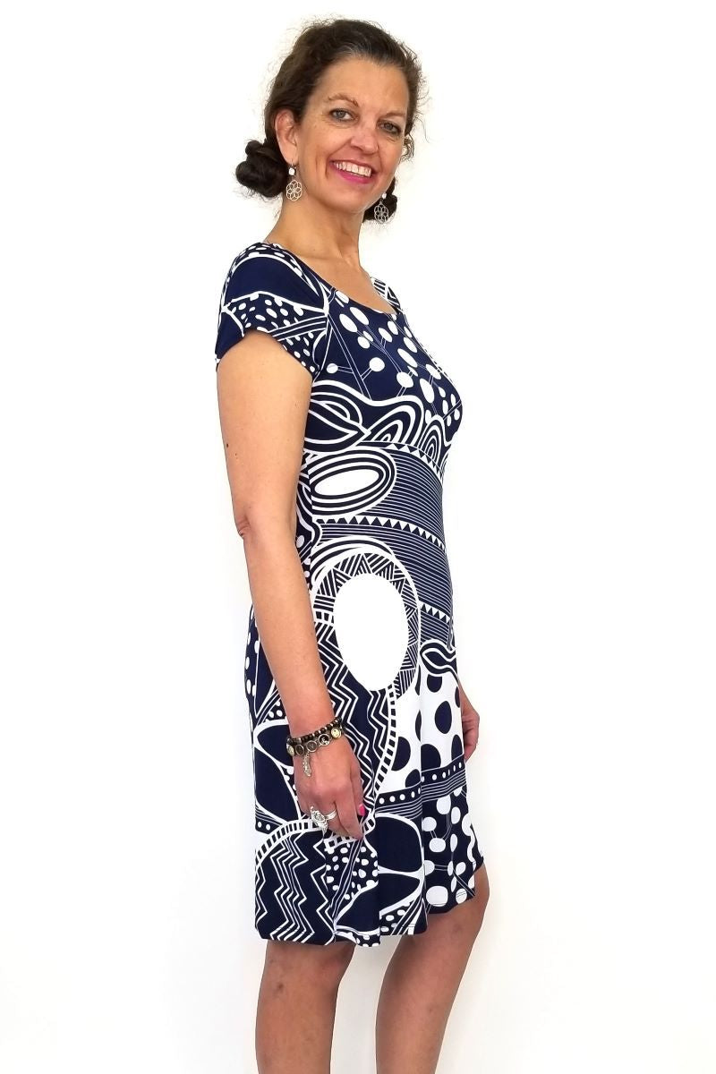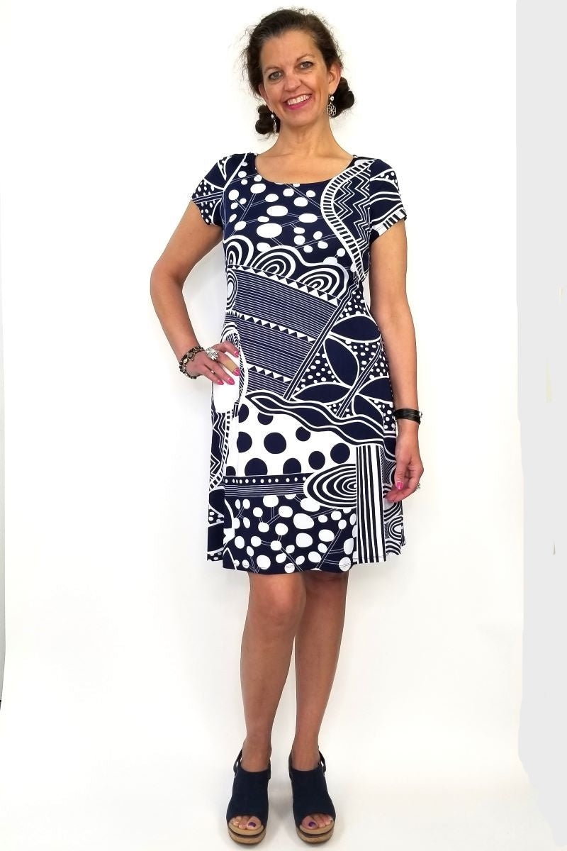 Regular price $58.20Brianna's patterned indigo and white cap sleeve dress is perfect for a casual evening out.