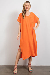 Regular price $55.30Experience the warm sunny days of summer in a dress that helps you stay cool and comfortable! Our air flow Orange Short Sleeve Dress features breathable fabric, a small pocket, and a slit along the side, perfect for days when you need to move in style. With the perfect combination of style and breathability, you'll be ready to take on the summer heat.