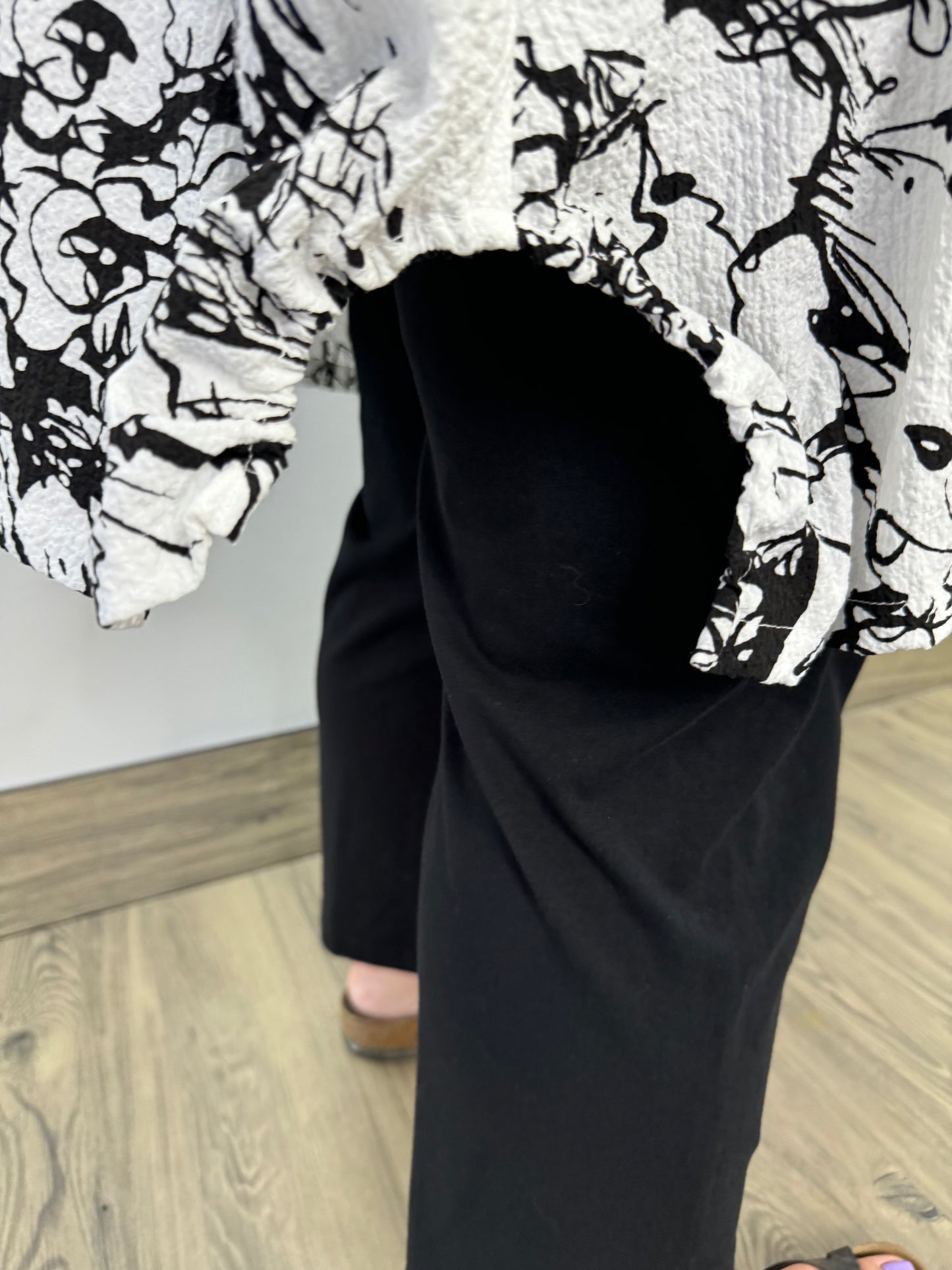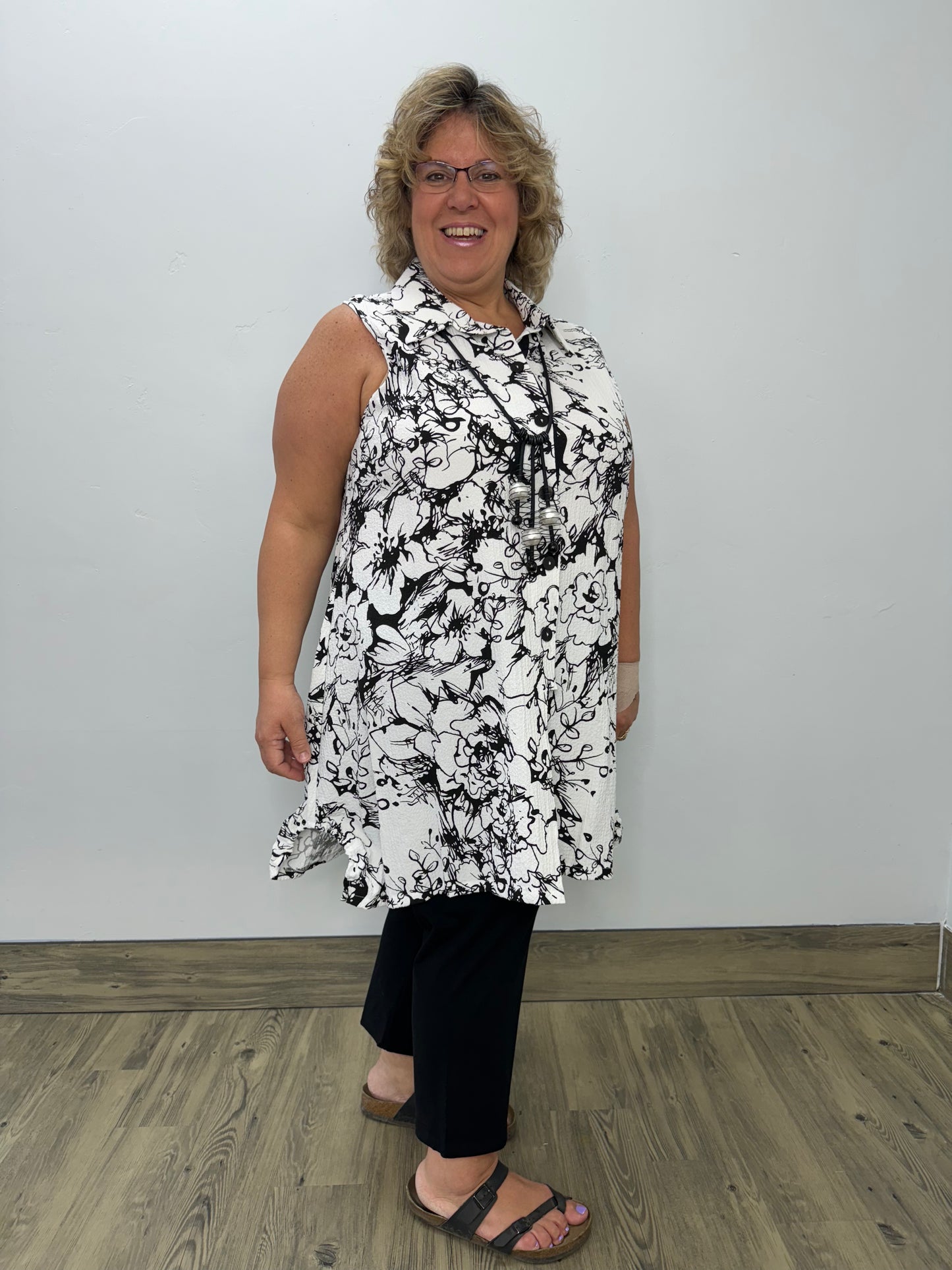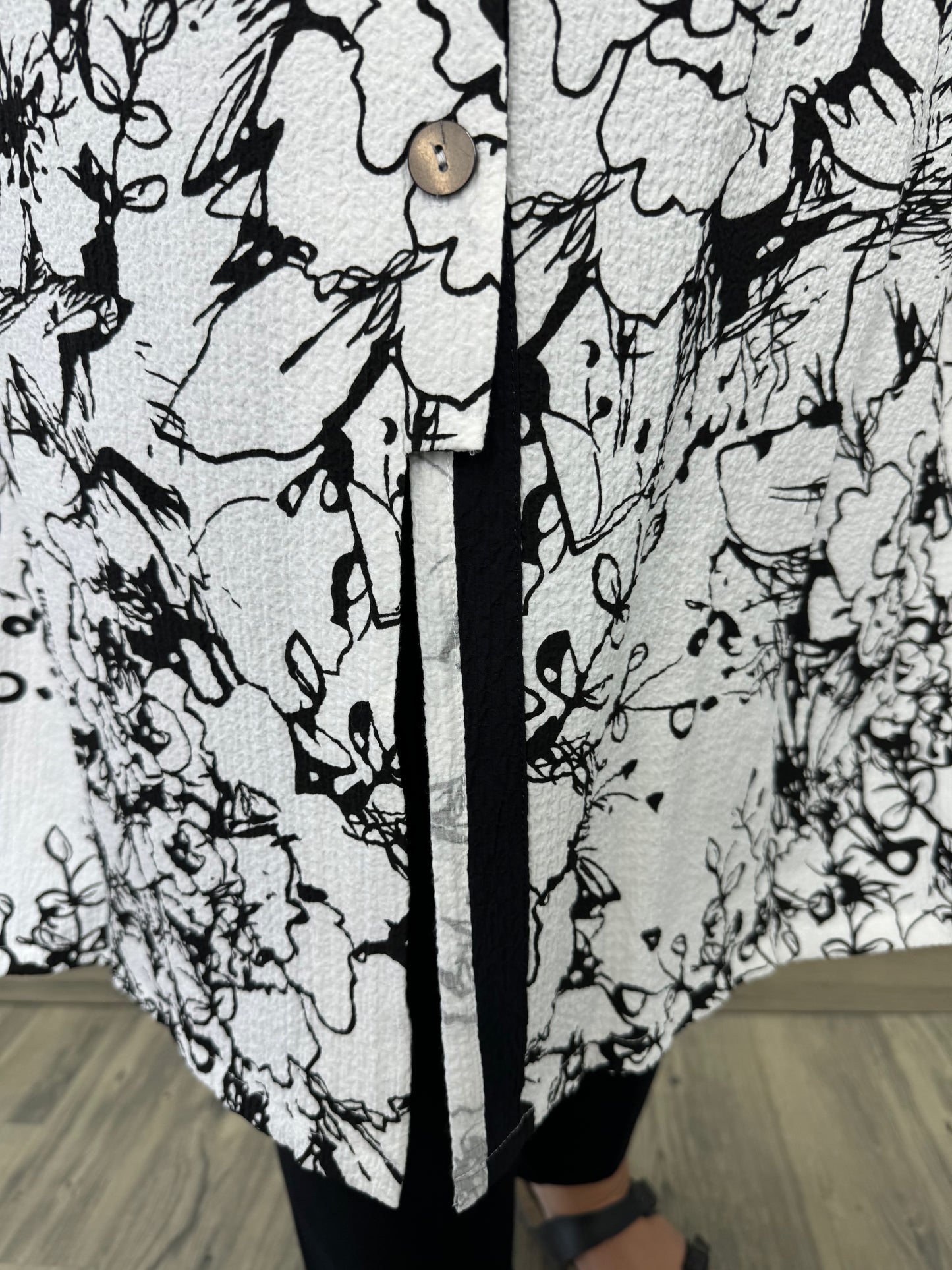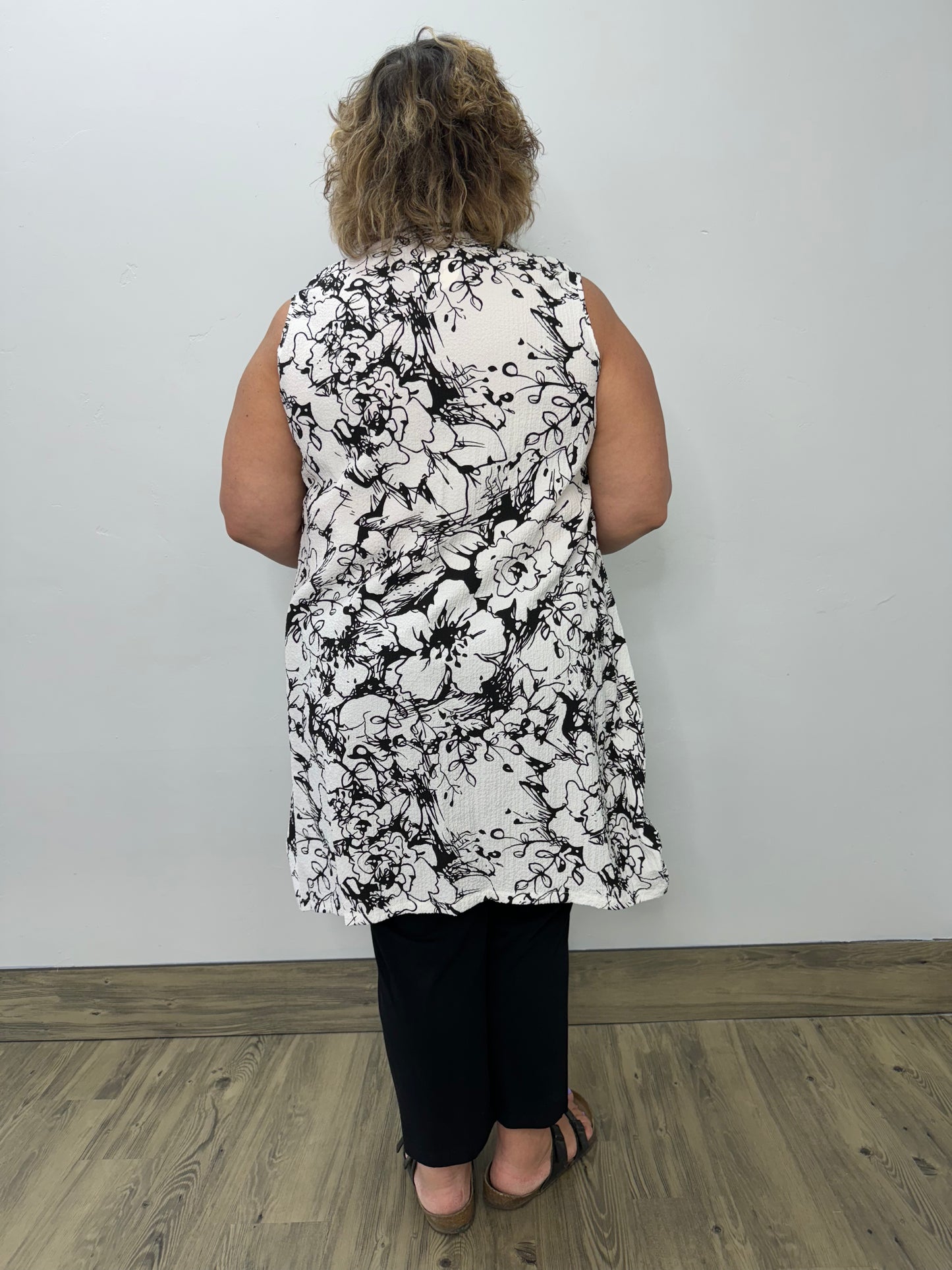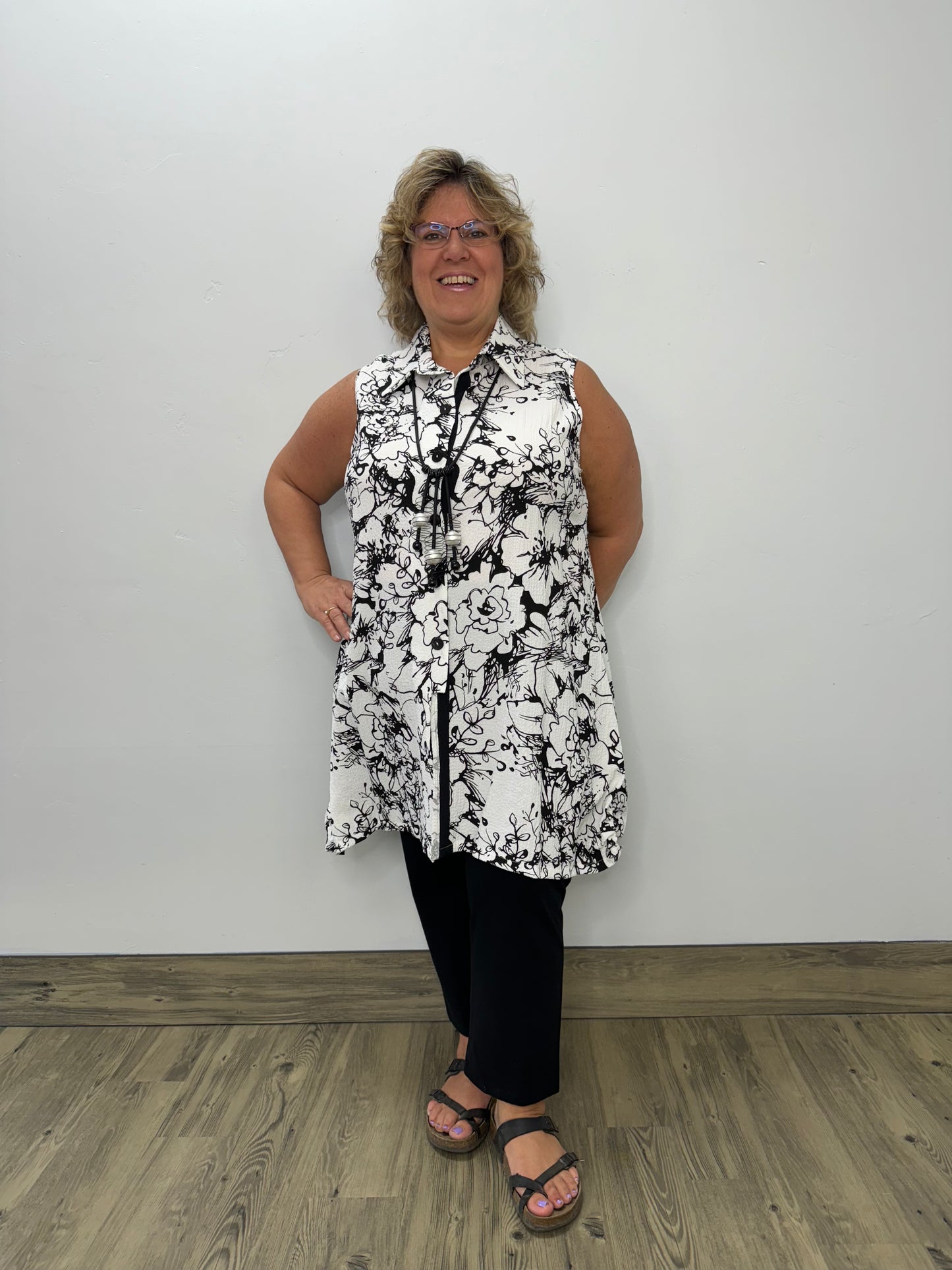 Regular price $103.20Effortlessly chic and versatile, our Black and White Pattern Button Down Tunic Dress is a must-have for any wardrobe. The sleeveless design and striking black and white pattern make it perfect for any occasion. Wear it closed as a dress with leggings, or open like a vest for a stylish layered look.