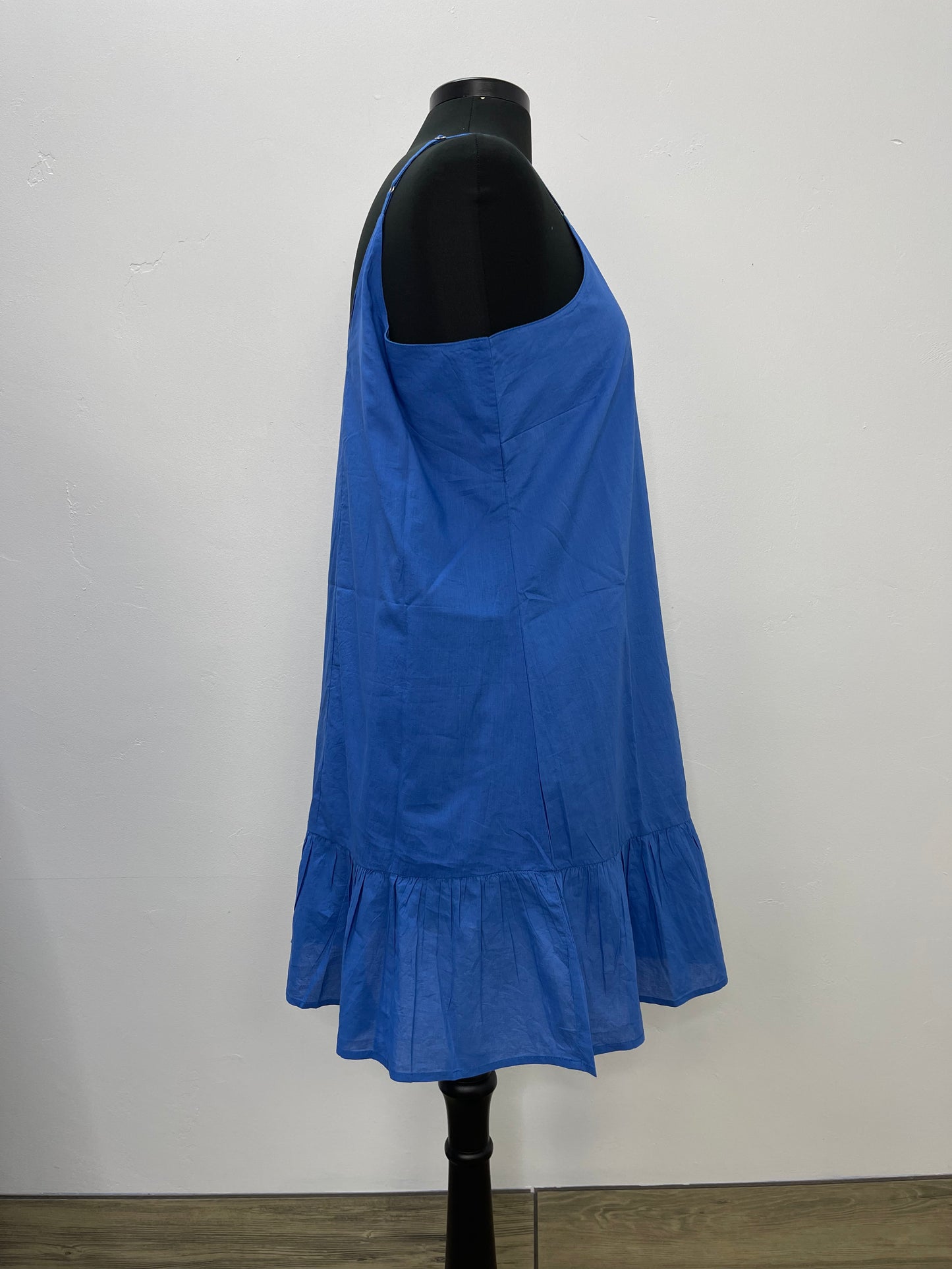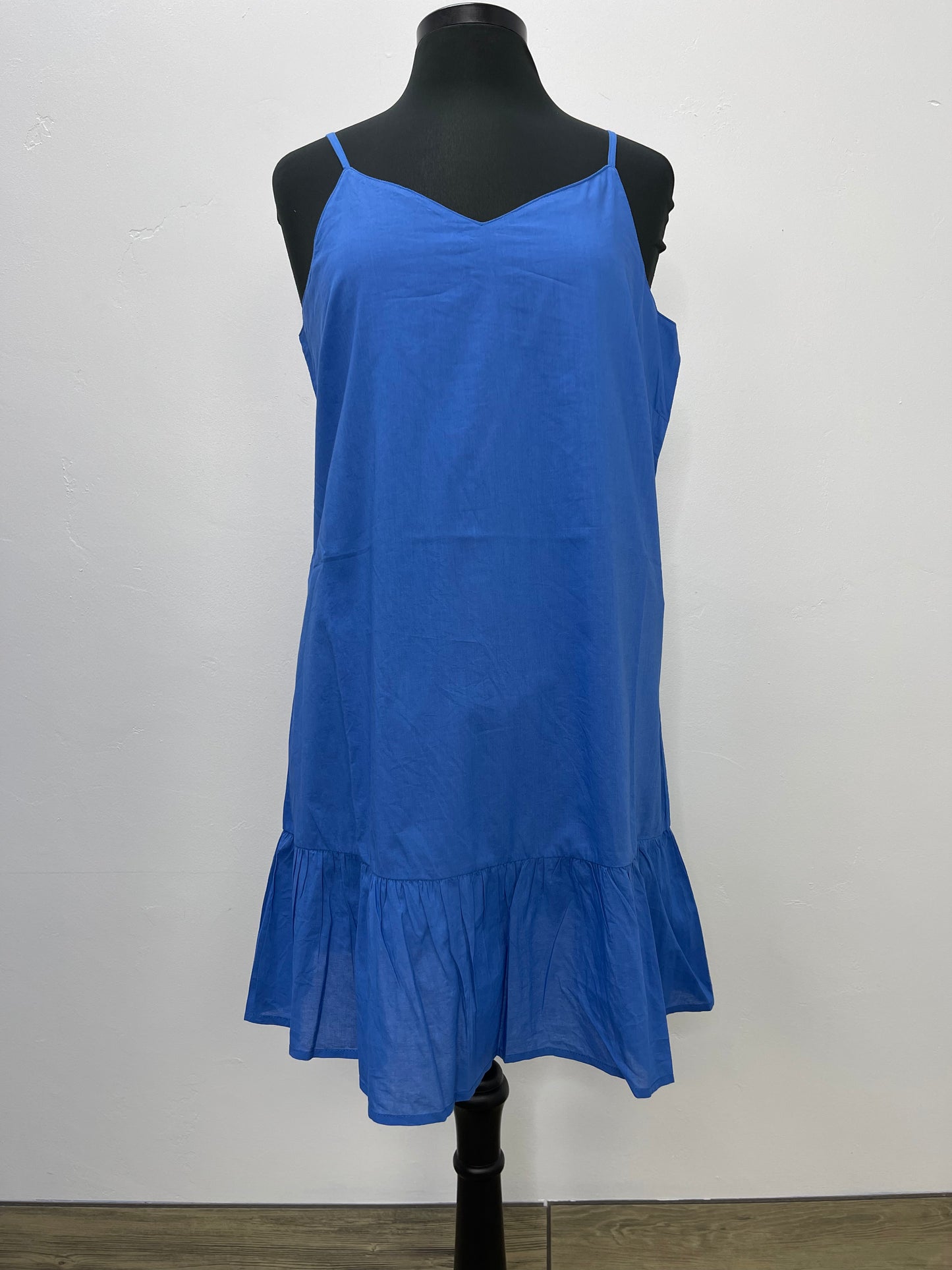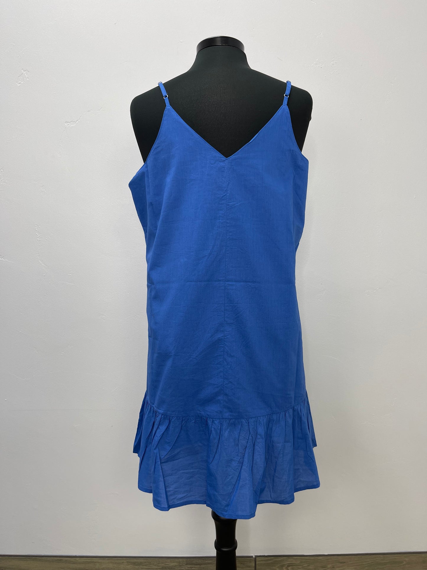 Regular price $62.30This stunning blue sleeveless dress is perfect for any occasion. Featuring a beautiful royal blue hue, a V neckline, and a peplum bottom, it looks gorgeous on its own or paired with white denim for an edgy, fashion-forward look. Get ready to make a statement!