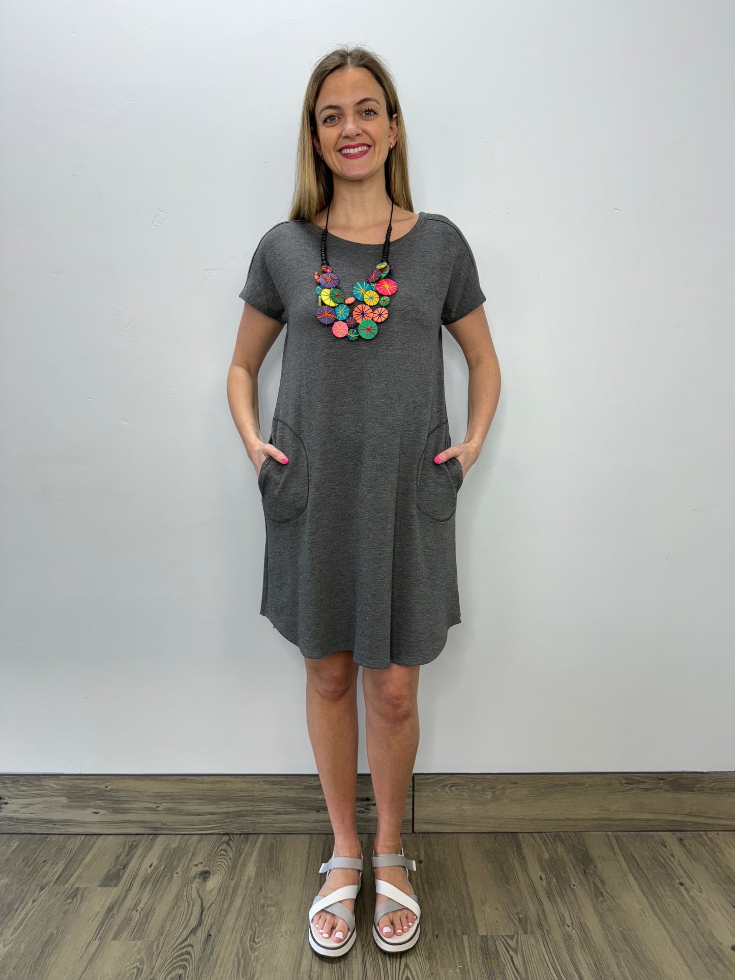 Charcoal Bamboo Jersey Short Sleeve Dress