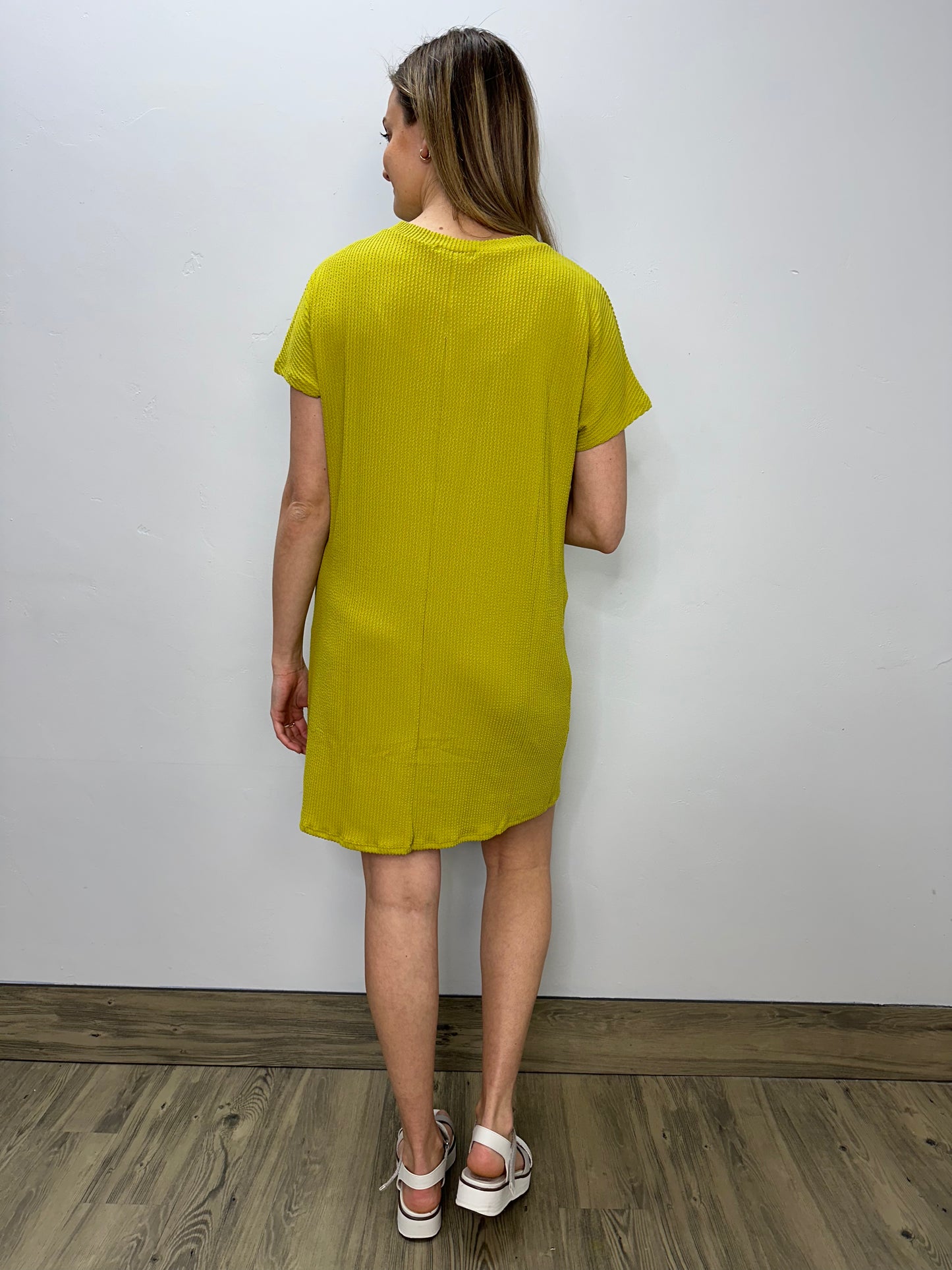 Chartreuse Yellow Ribbed Short Sleeve T-Shirt Dress