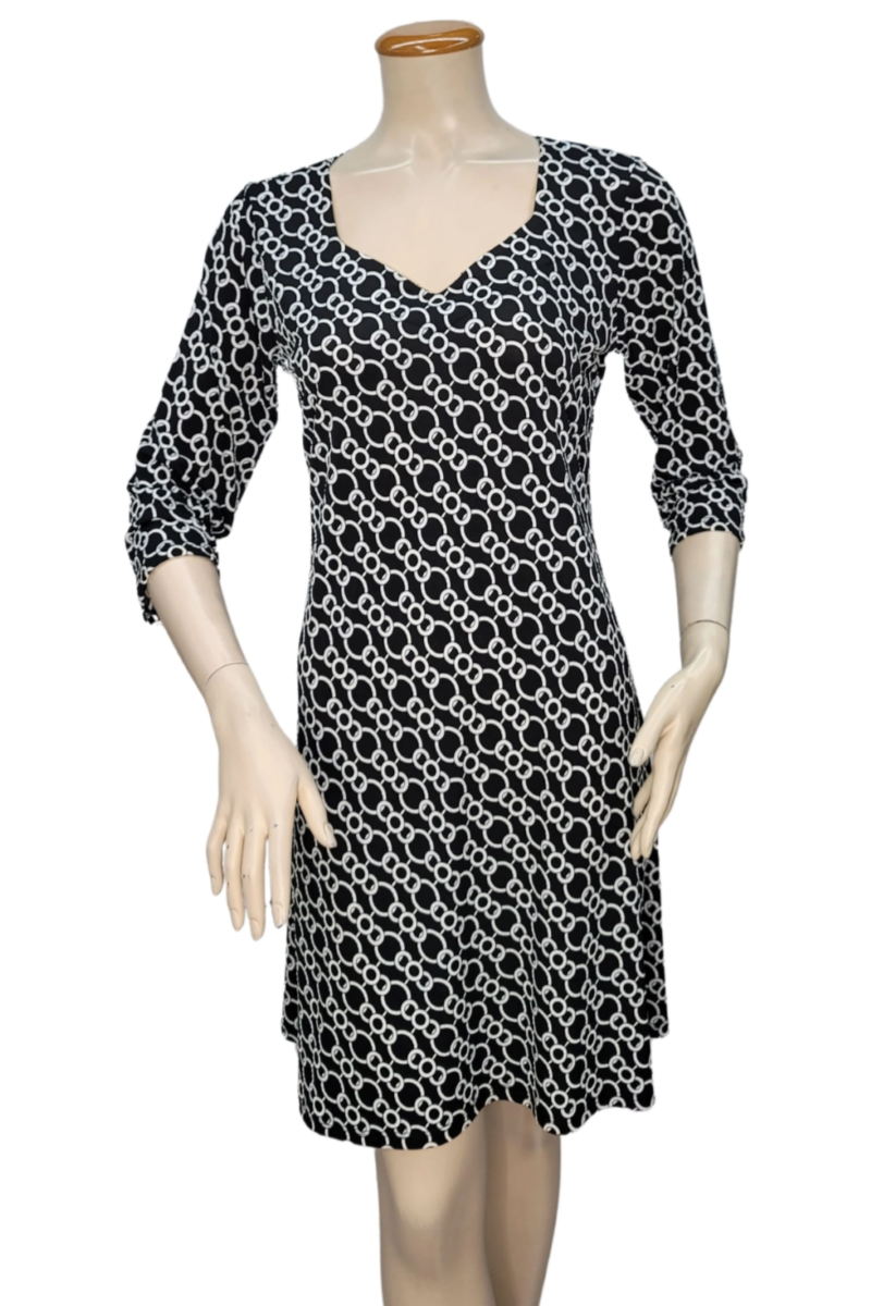 D0809010 Black White 3/4 Sleeve Dress with Sweetheart Neckline
