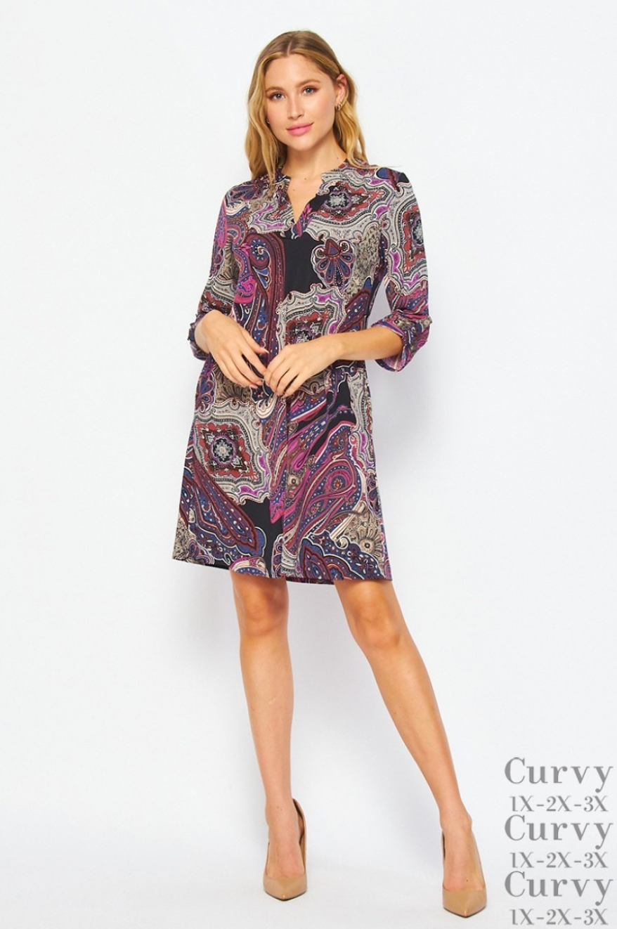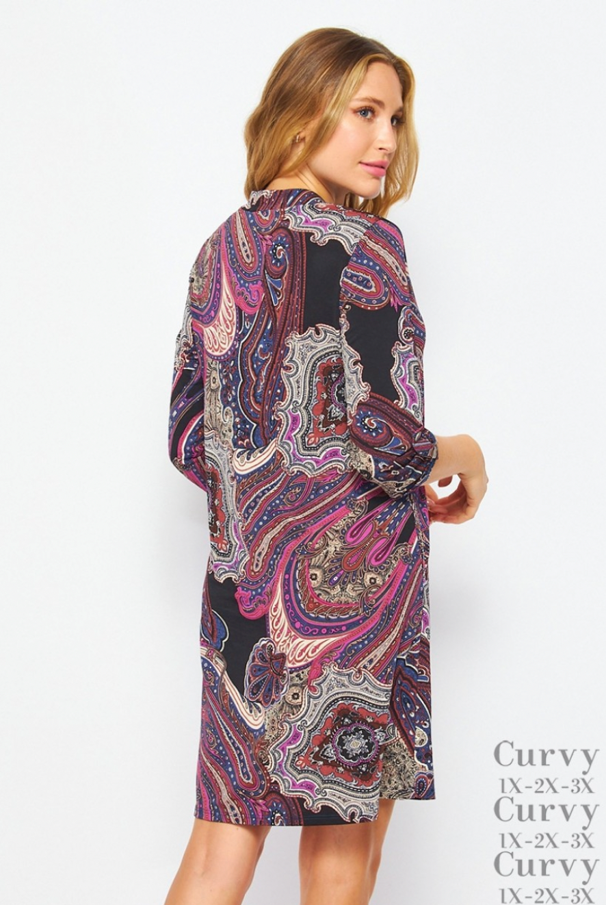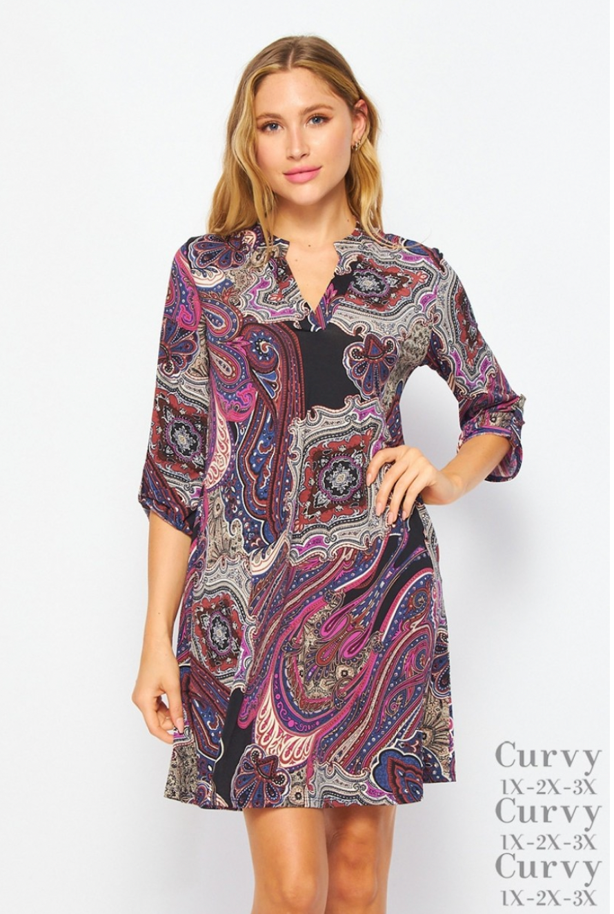 Gabby 3/4 Sleeve Paisley V Neck Dress