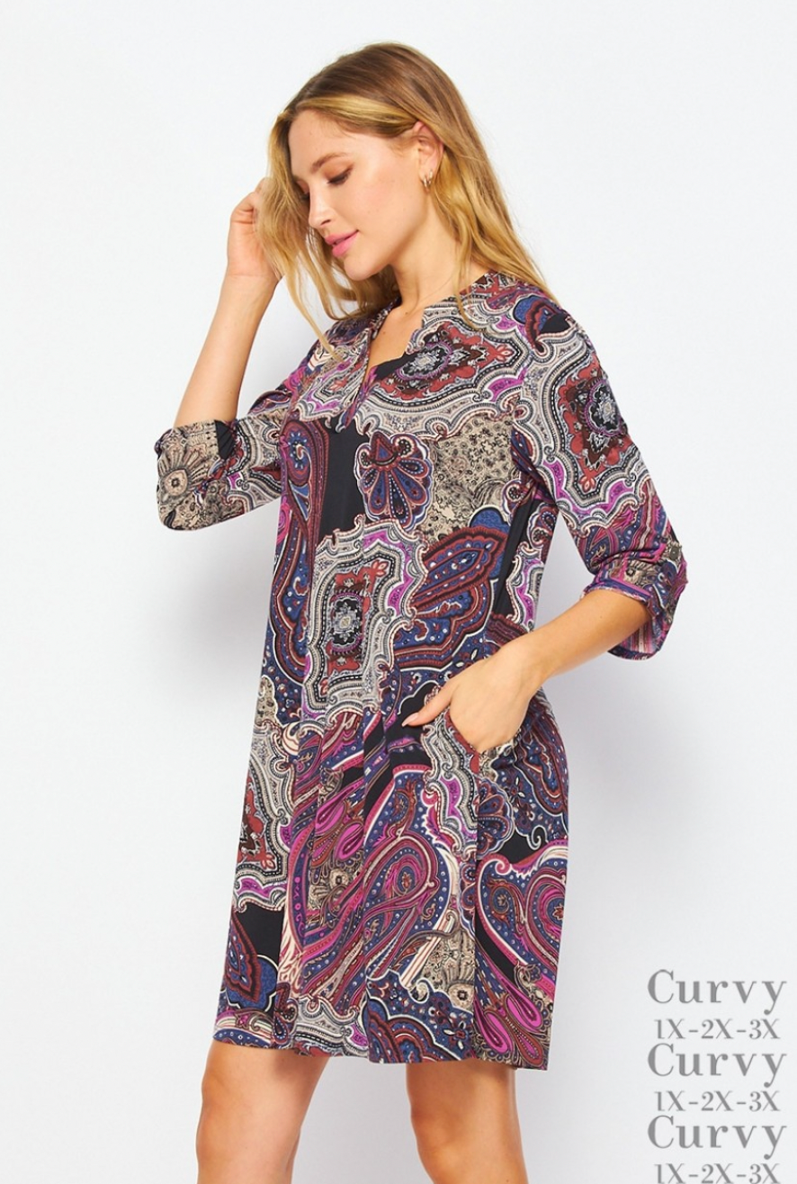 Regular price $29.50Beautiful purple paisley dress with v neck and 3/4 length sleeve.