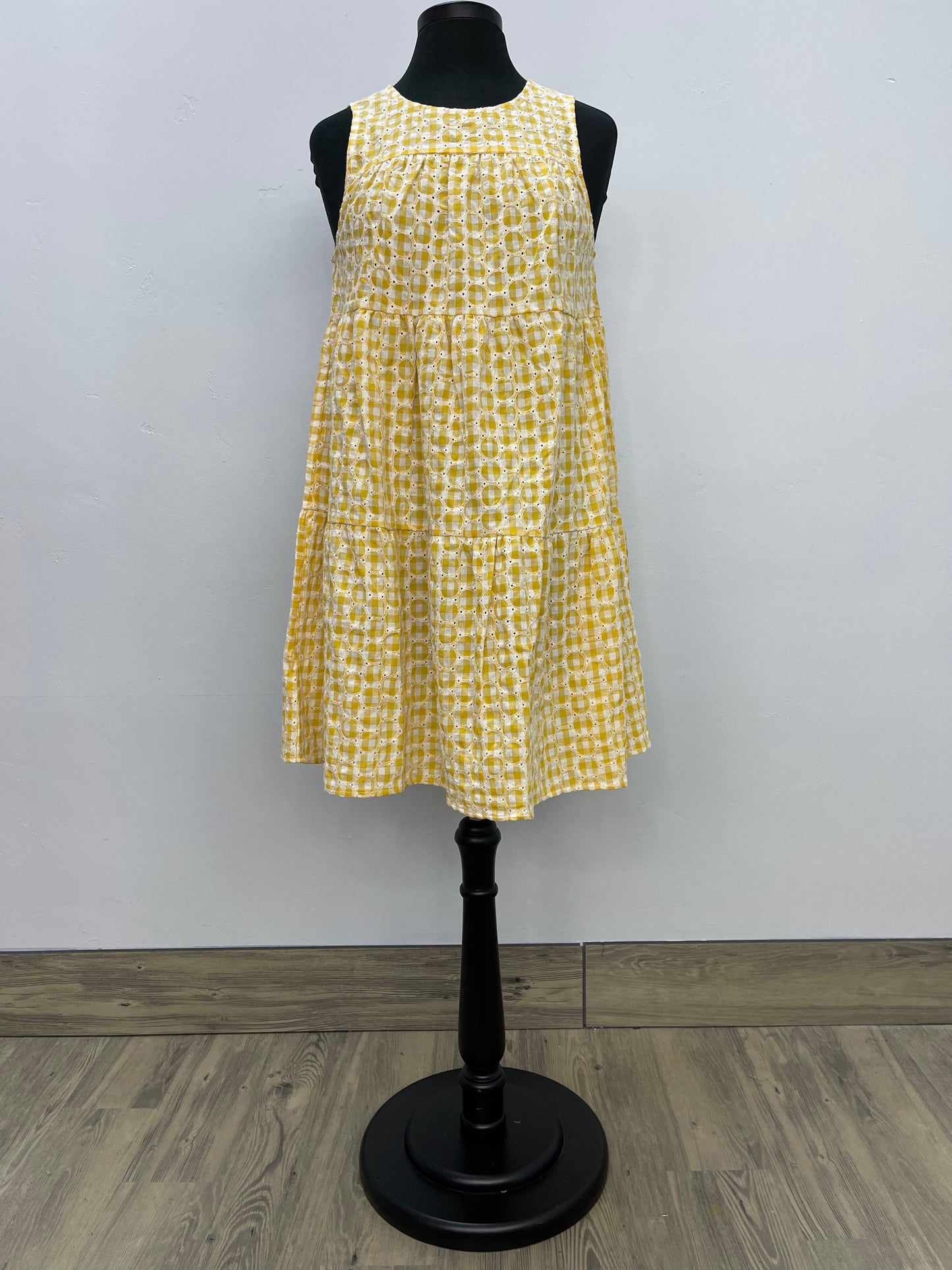 Regular price $62.30This Lemon Yellow Pattern Tiered Sleeveless Dress is the perfect choice for warm-weather occasions. The sleeveless design provides a desirable balance of comfort and style, allowing you to stay cool while looking great. It has a keyhole opening in back with an adorable shell button closure. This dress also features an attractive tiered design which adds a sense of elegance to your look.