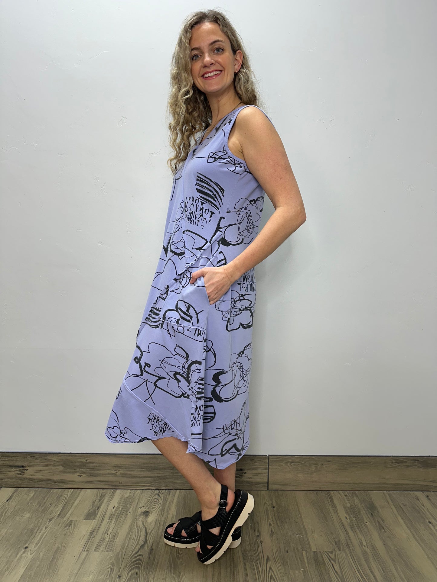 Regular price $143.20Unleash your inner artist with our Fenini Lilac Purple Scribbles Long Dress. With a playful scribbles pattern, v-neck, and sleeveless design, you'll feel beautiful and free as you twist and twirl in this statement-making dress!