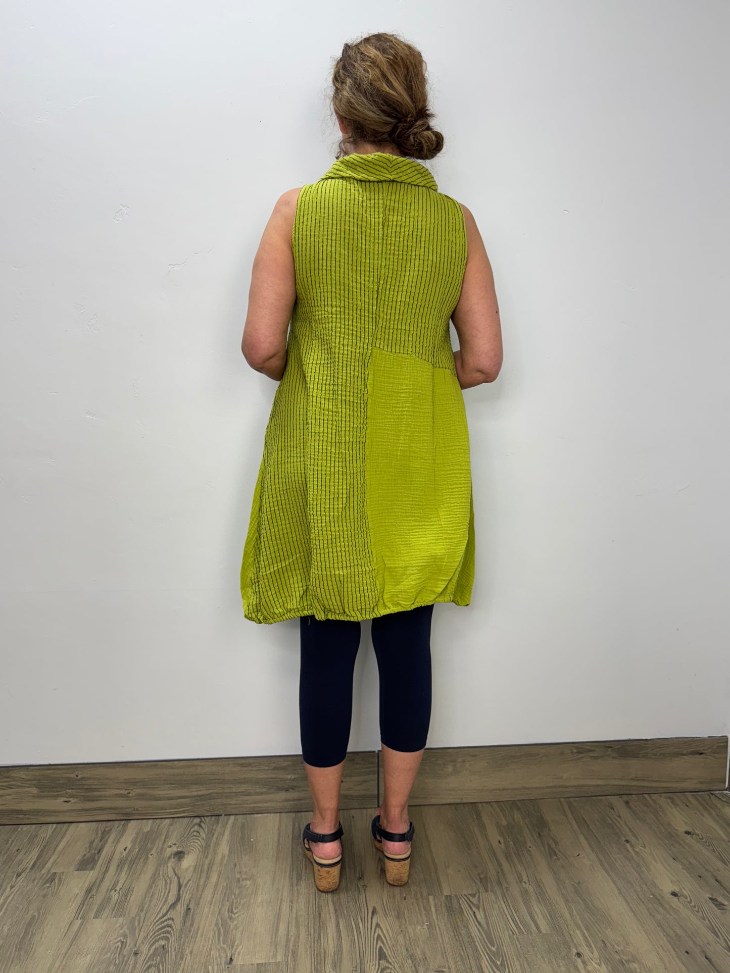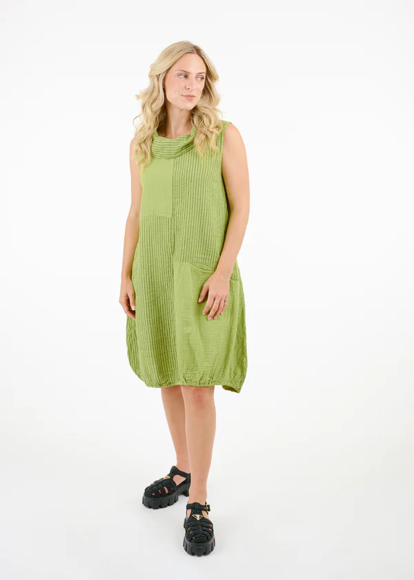 Lime Green Stripe Sleeveless Bubble Dress