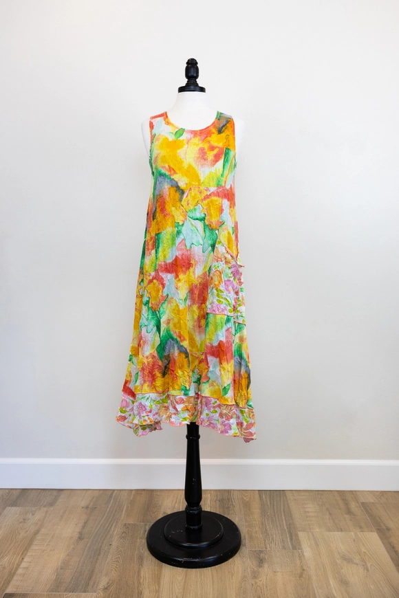 Regular price $77.60Experience ultimate comfort and style with our Mango Watercolor Swing Dress! This sleeveless dress features a unique crinkle material and a beautiful knee-length design. The watercolor pattern adds a touch of artistry to your wardrobe. Embrace effortless elegance with this comfortable and versatile dress.