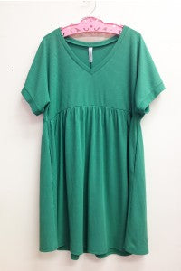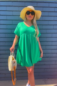 Ribbed V-Neck Baby Doll Dress - Kelly Green