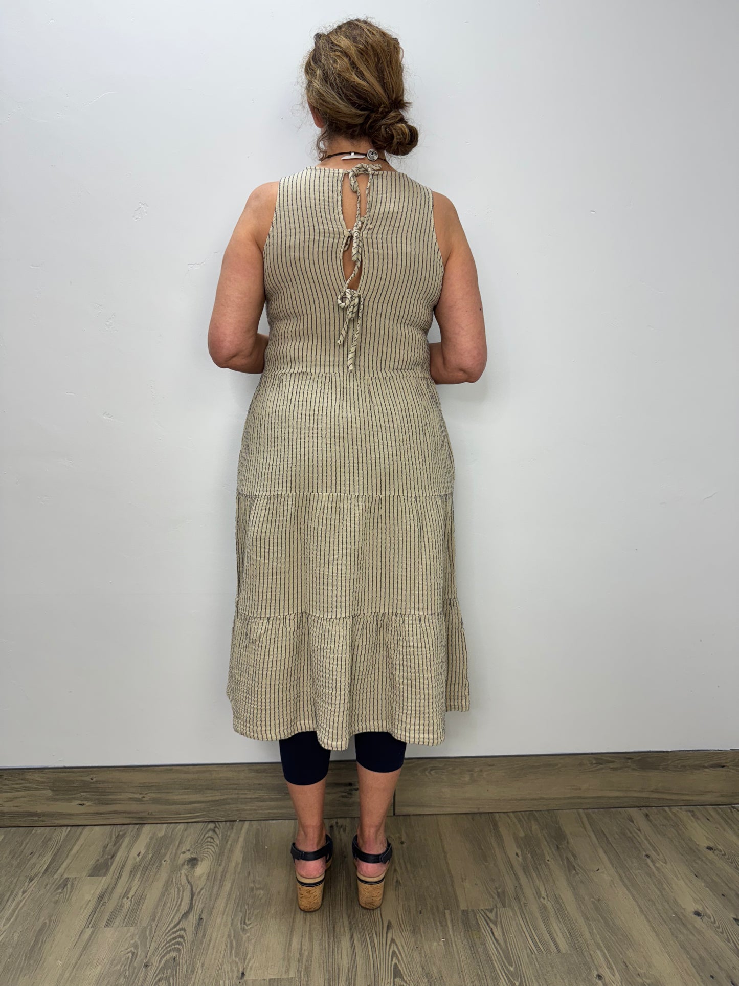 Sand Stripe Tiered Dress