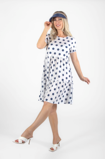 Regular price $67.90This White Polka Dot Short Sleeve Dress is made for all who love to show off their playful side! Featuring a light and airy swing dress with tiers, the dress comes with short sleeves, striking white and indigo polka dot accents, and a round neck. Comfort and style come together for the perfect look!