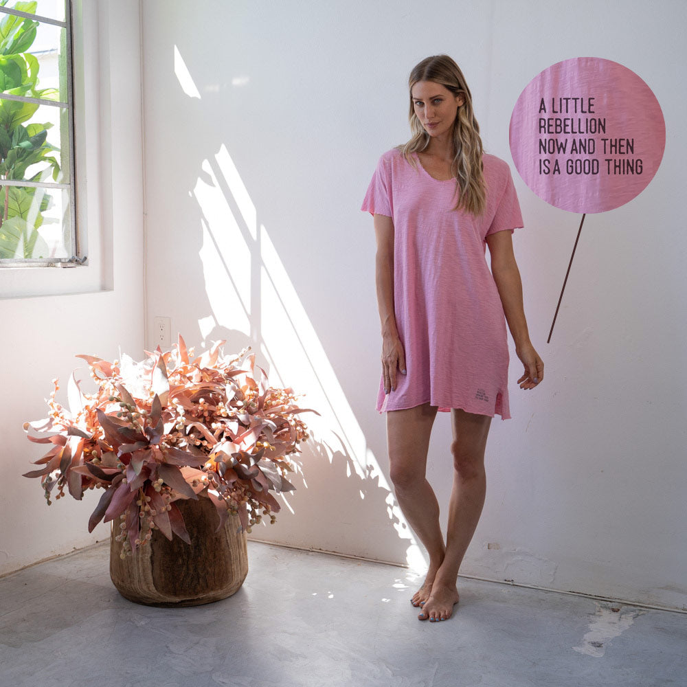 Zoey Cotton Slub Short Sleeve Dress - Pink