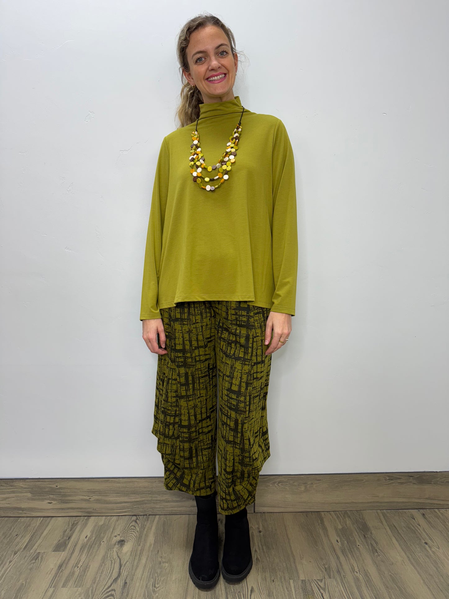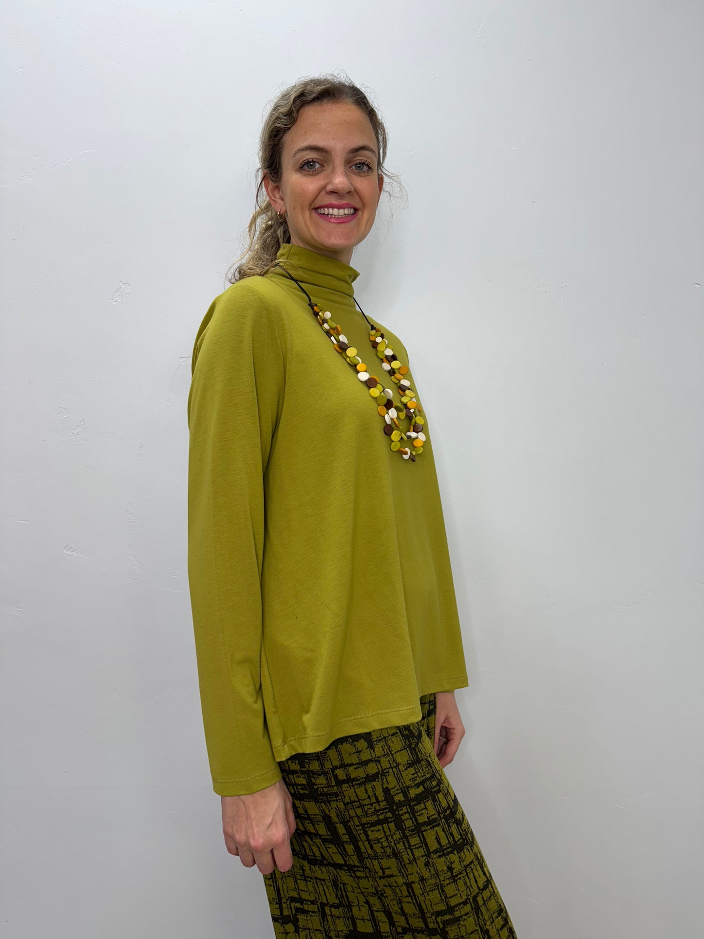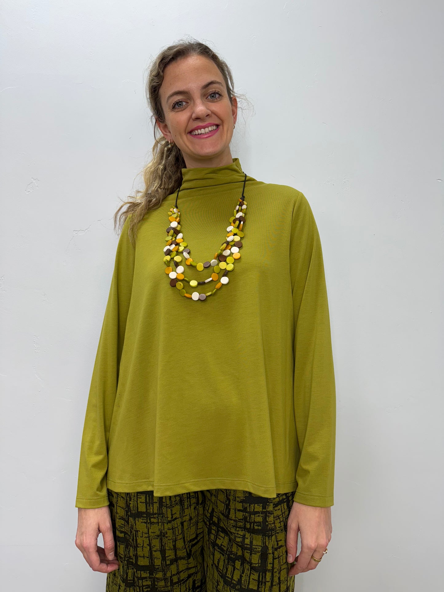 Chive Green Bethany Long Sleeve Cowl Neck Top