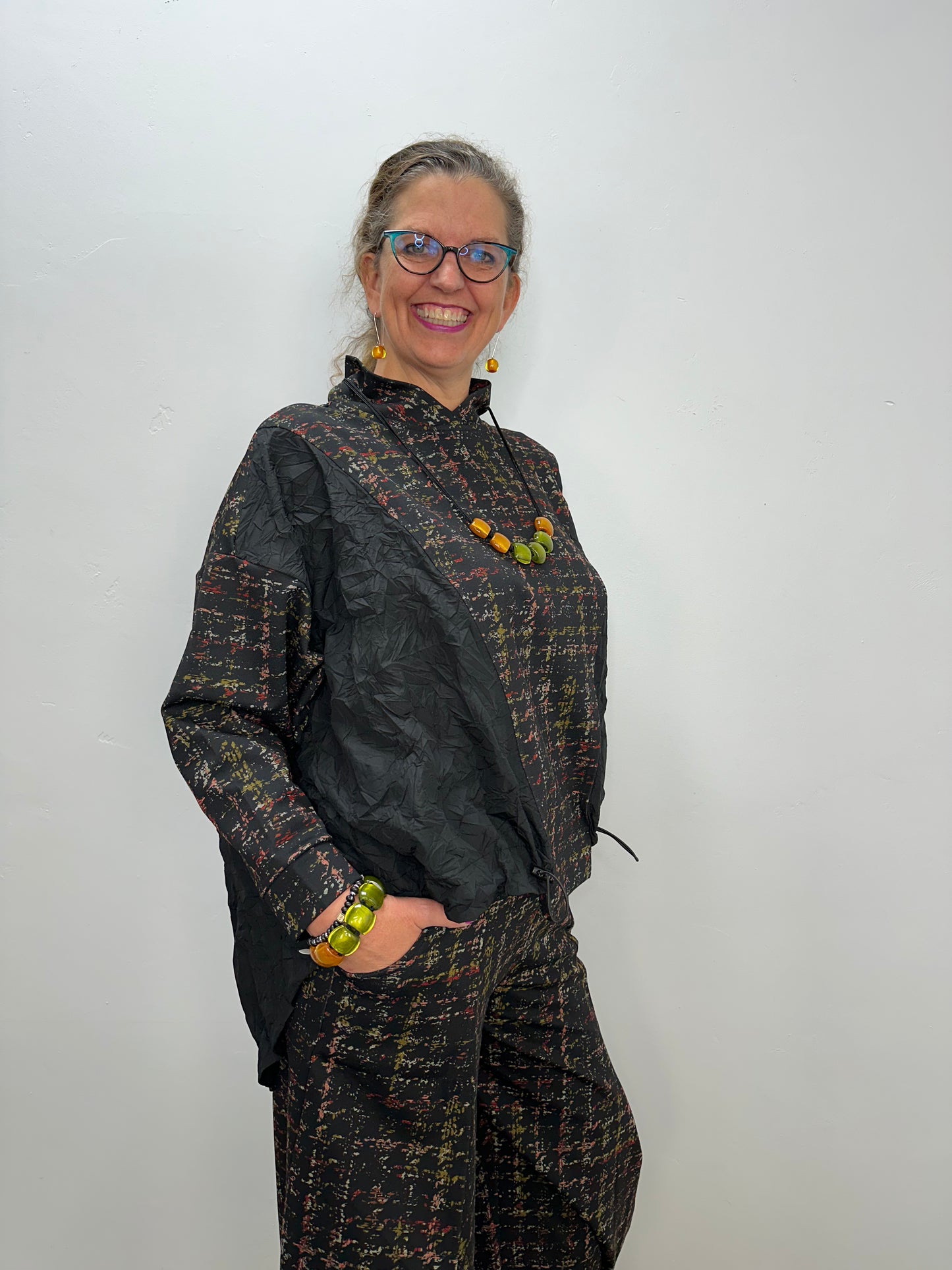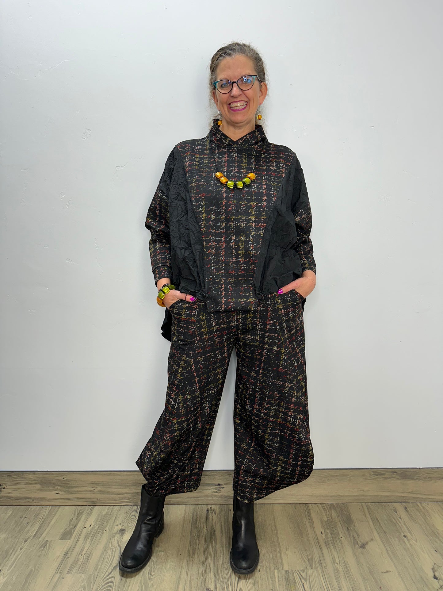Stretched Houndstooth Plaid Ponte Ryan Top