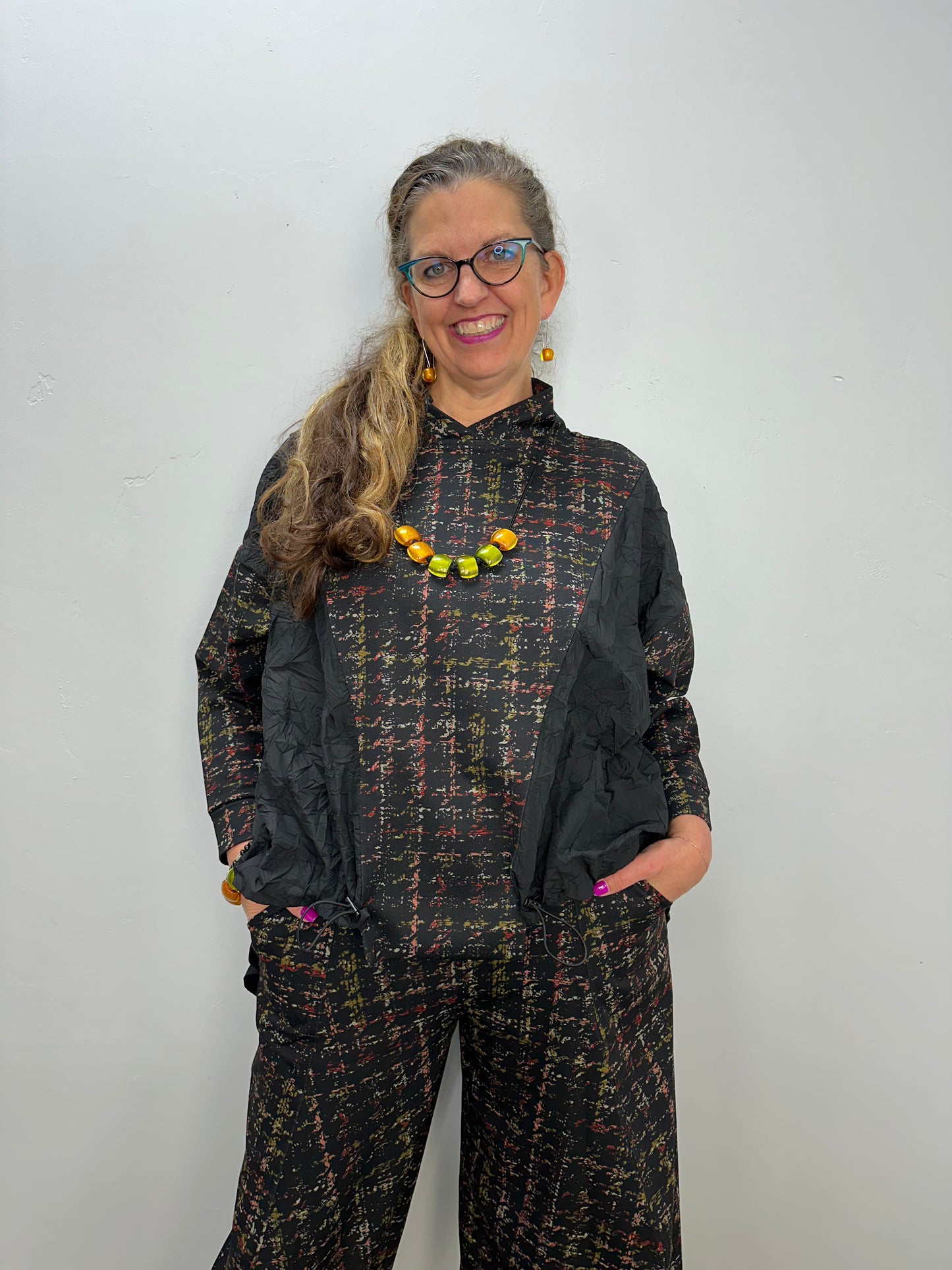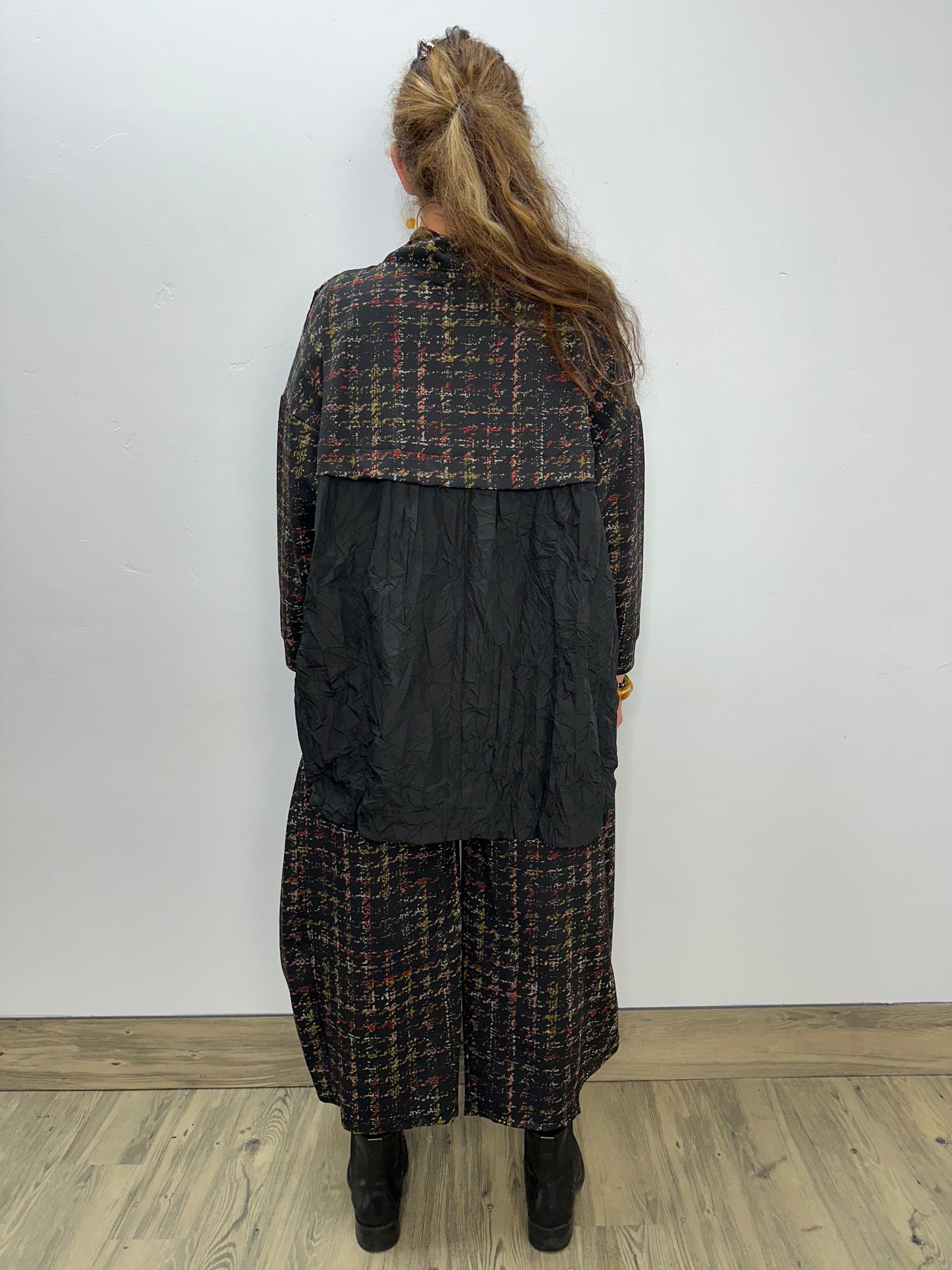 Regular price $146.30Get ready to elevate your style game with our Stretched Houndstooth Plaid Ponte Ryan Top! Made from a heavy weight Ponte fabric, this top not only feels luxurious and buttery, but also has a synched waist for a flattering silhouette. The cowl neck and parachute detailing add unique touches, making this top a must-have statement piece.
