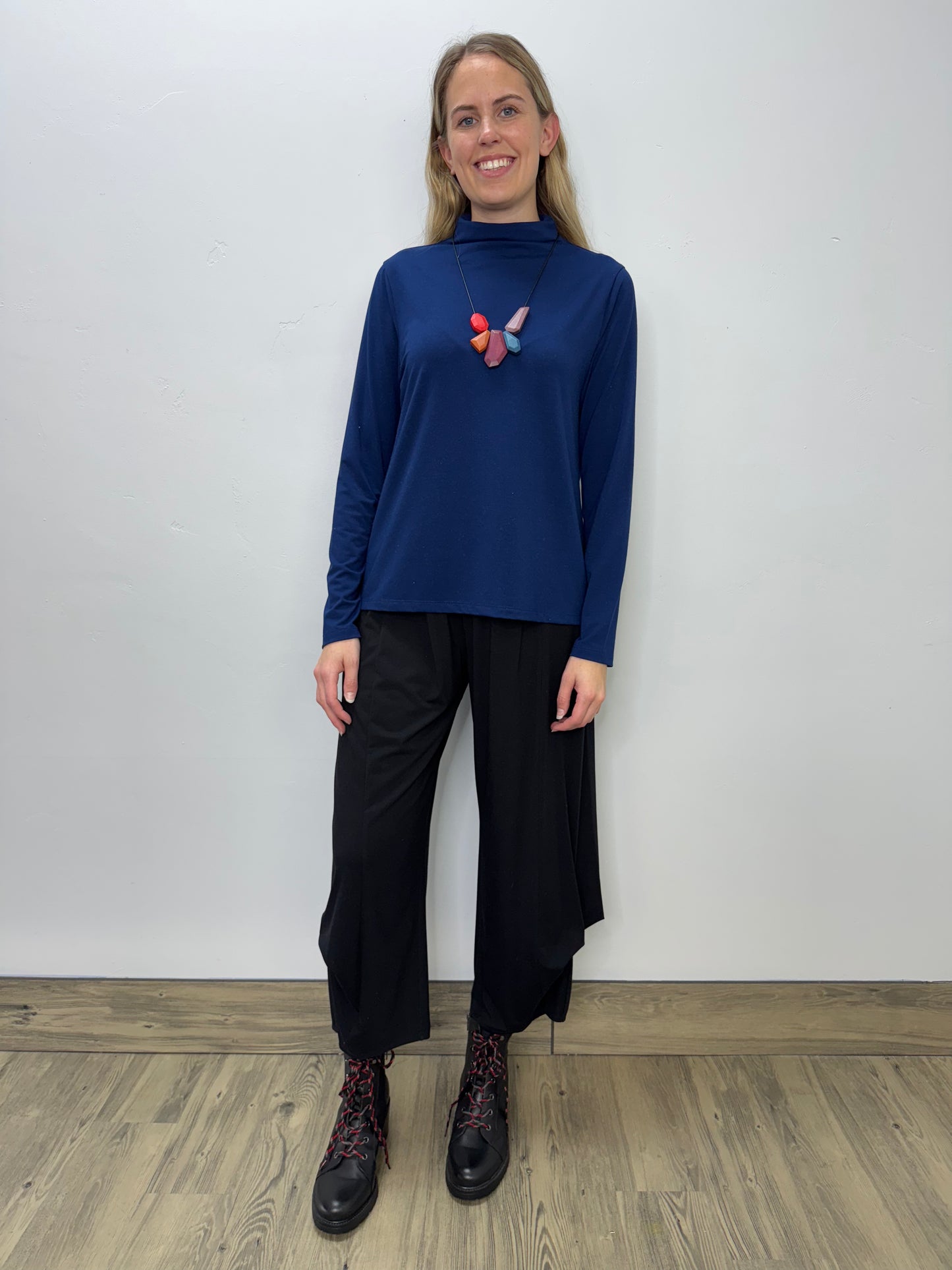 Rain Blue Bethany Long Sleeve Cowl Neck Top