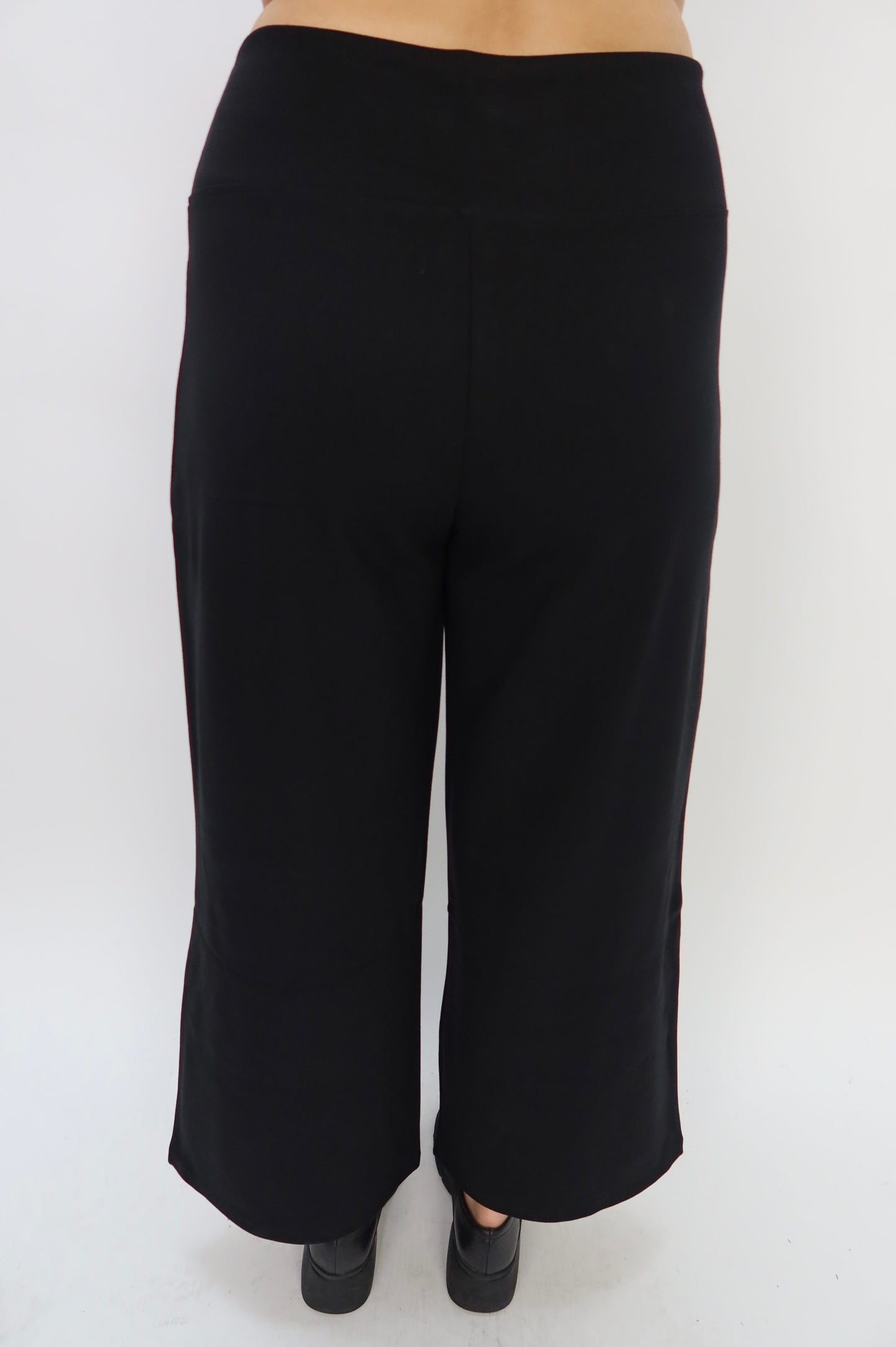 The Black Ponte Flare Pull On Pant by Shannon Passero offers effortless style and comfort. Designed with a wide waistband and stretch knit fabric, these pants move with you, perfect for busy days. The pull-on design and front patch pocket blend practicality with a flattering flare silhouette, ensuring you look polished and feel comfortable all day long.