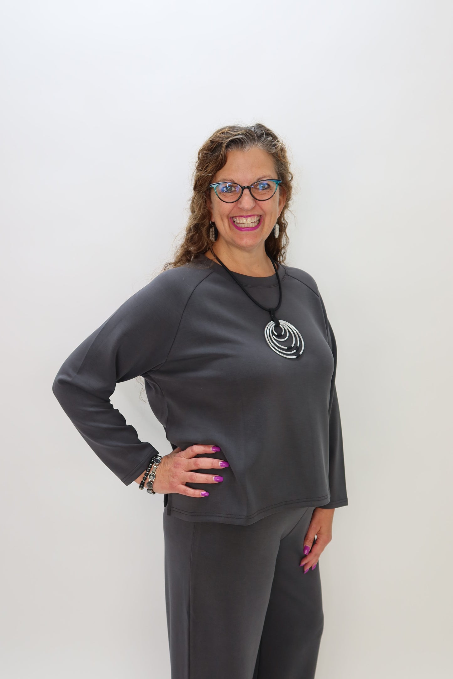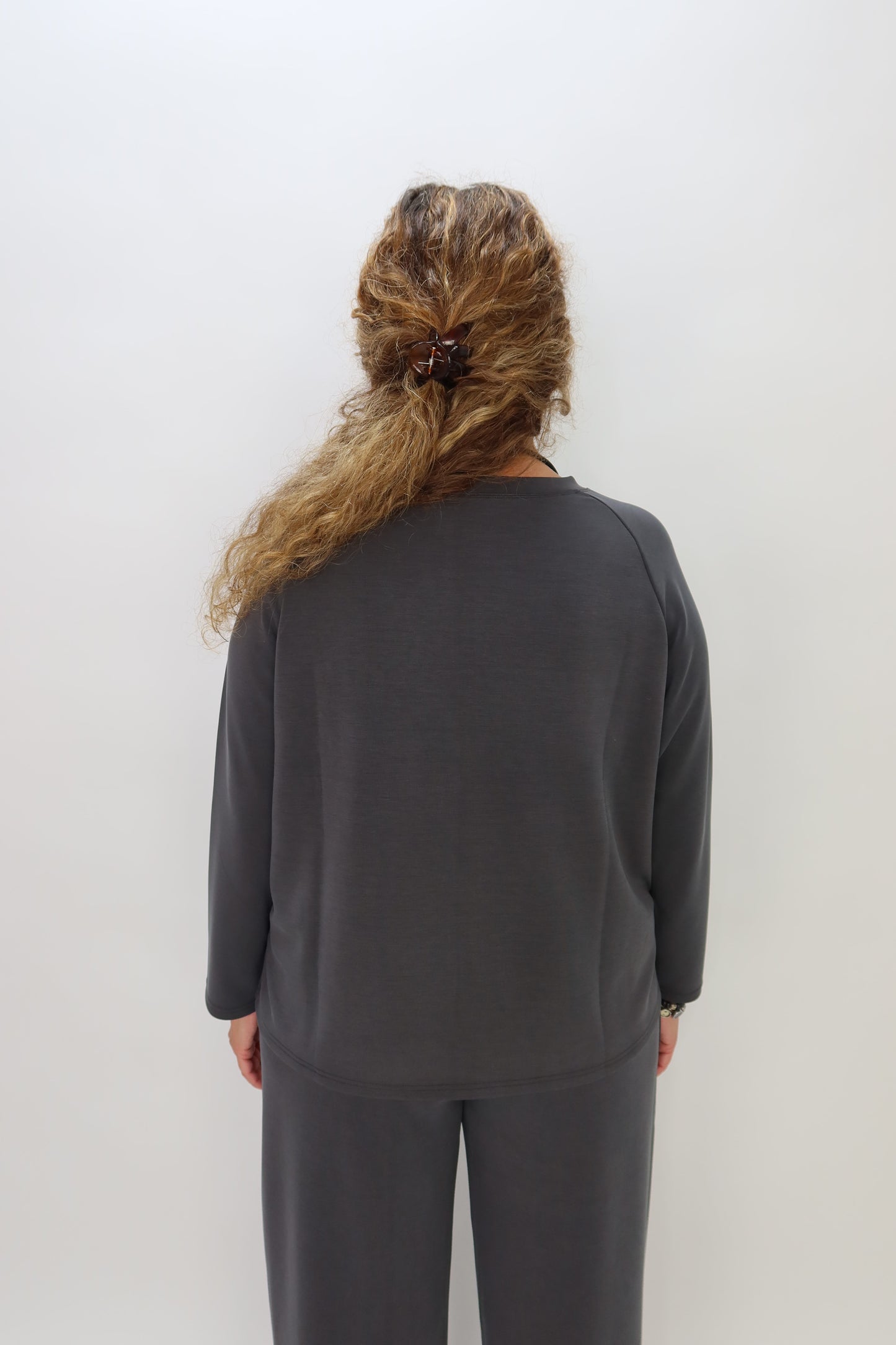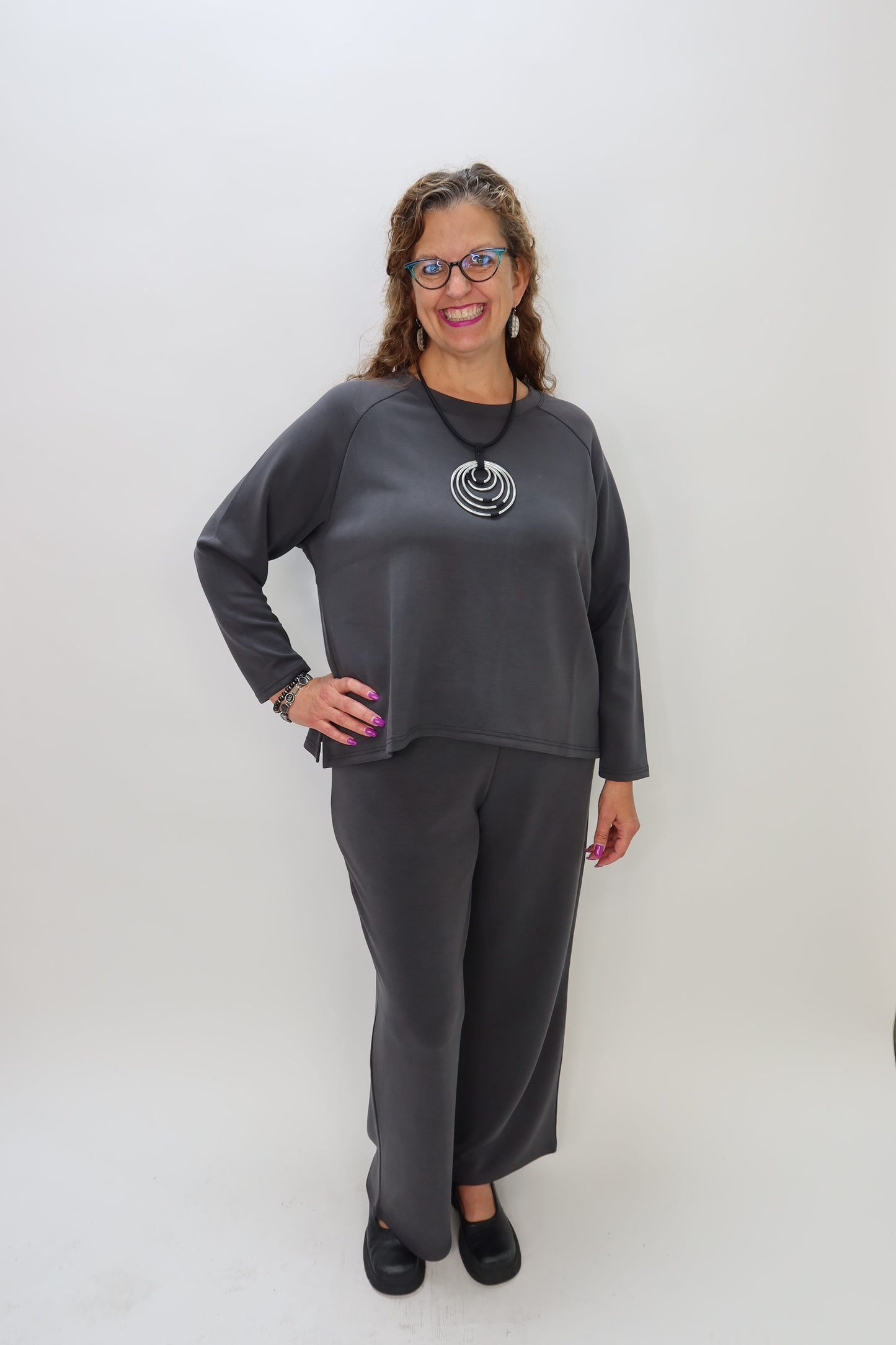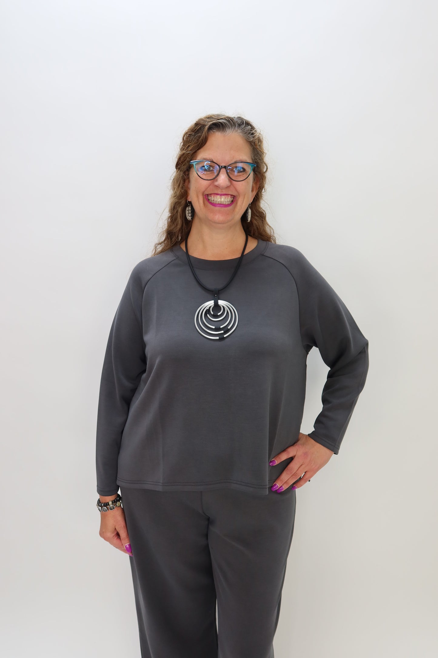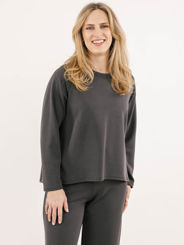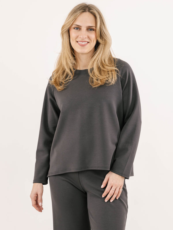 Carbon Gray Scuba Long Sleeve Pull On Top