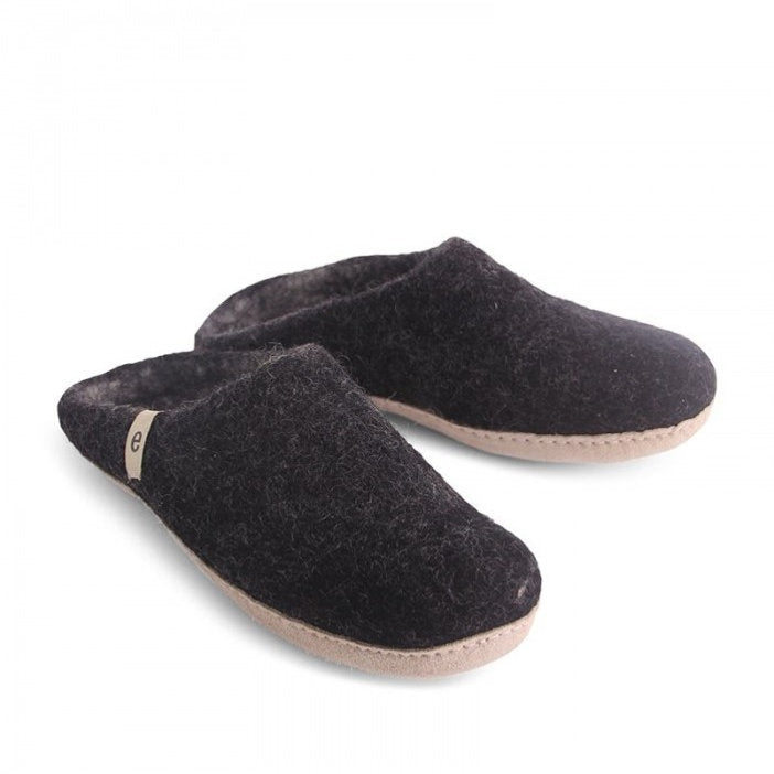 Black Wool Slippers