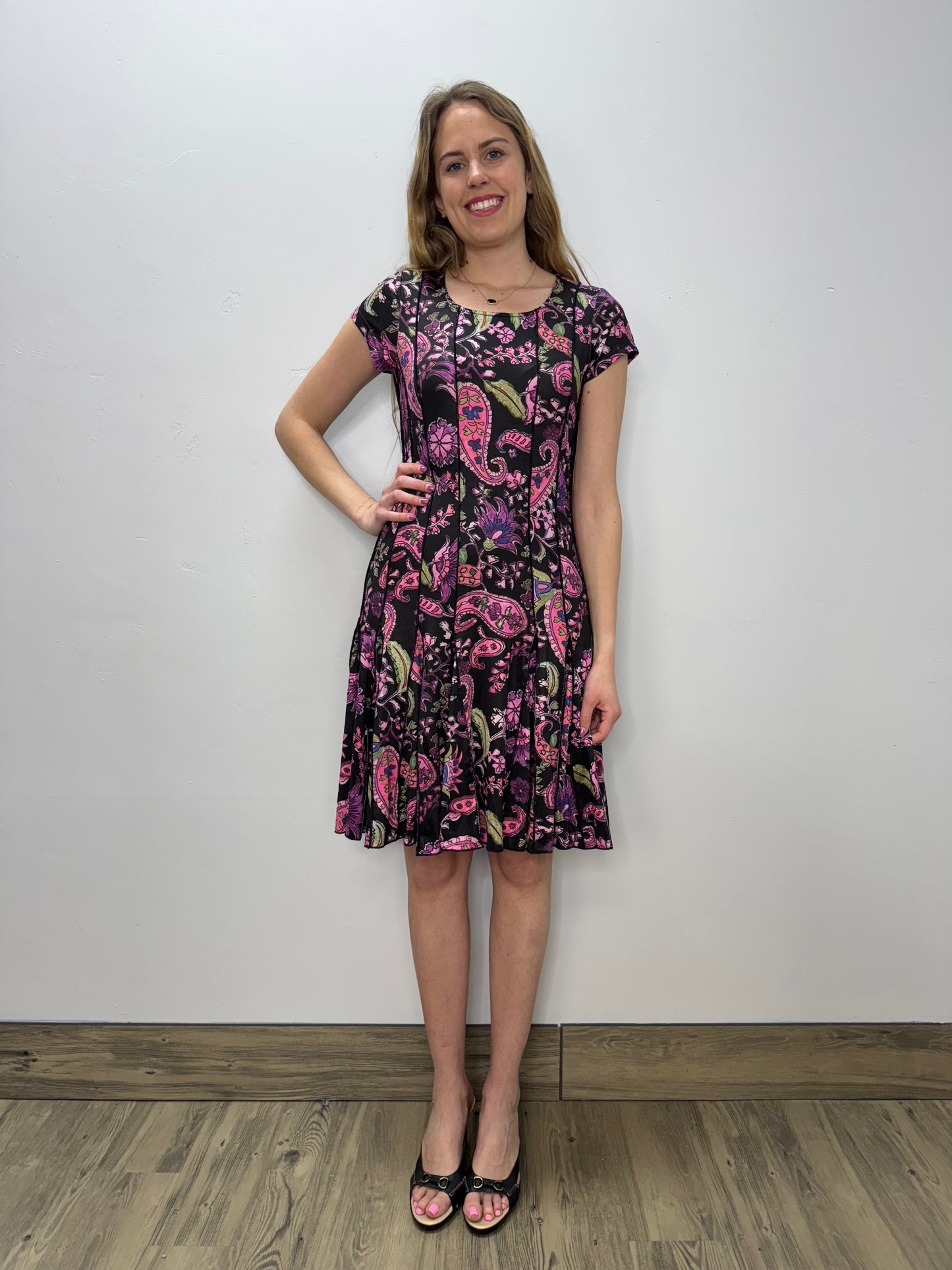Pink Paisley Pattern Merrill Edge Cap Sleeve Dress