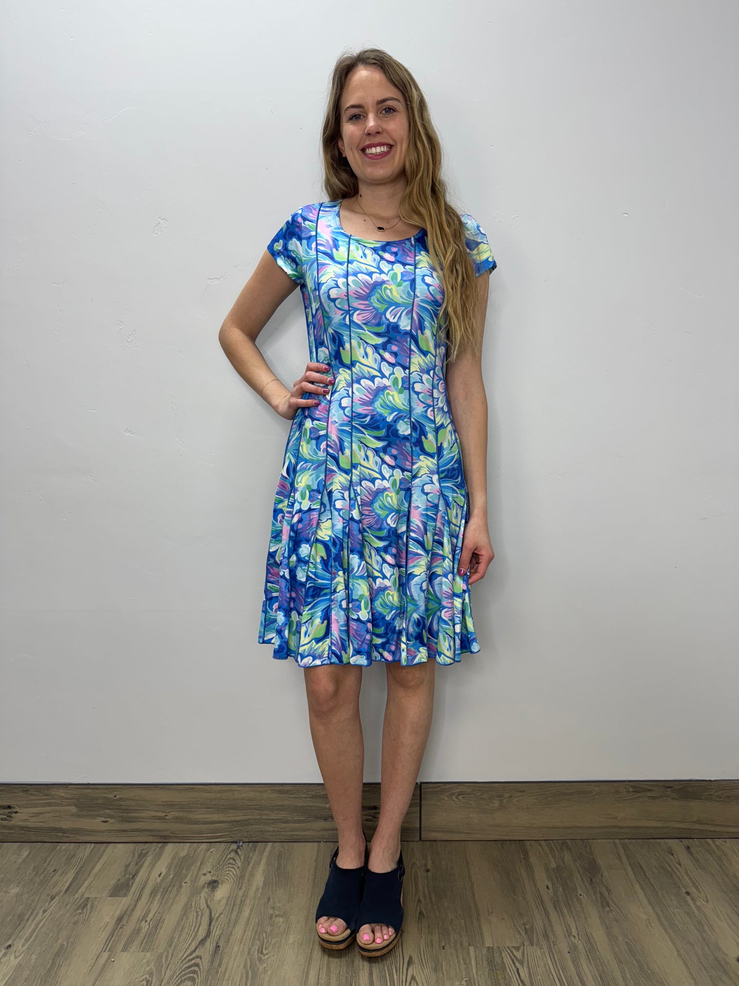 Blue Pattern Merrill Edge Cap Sleeve Dress