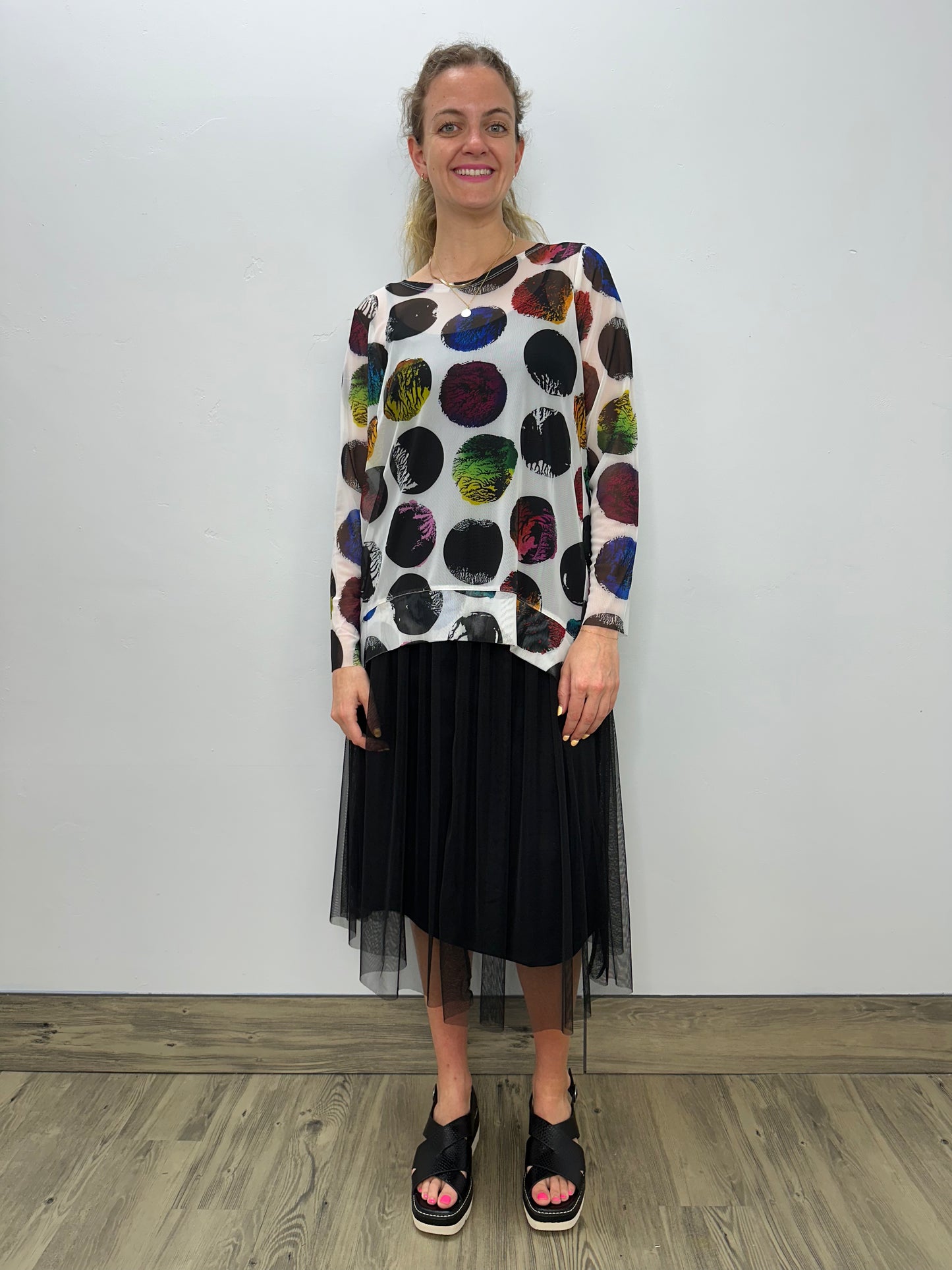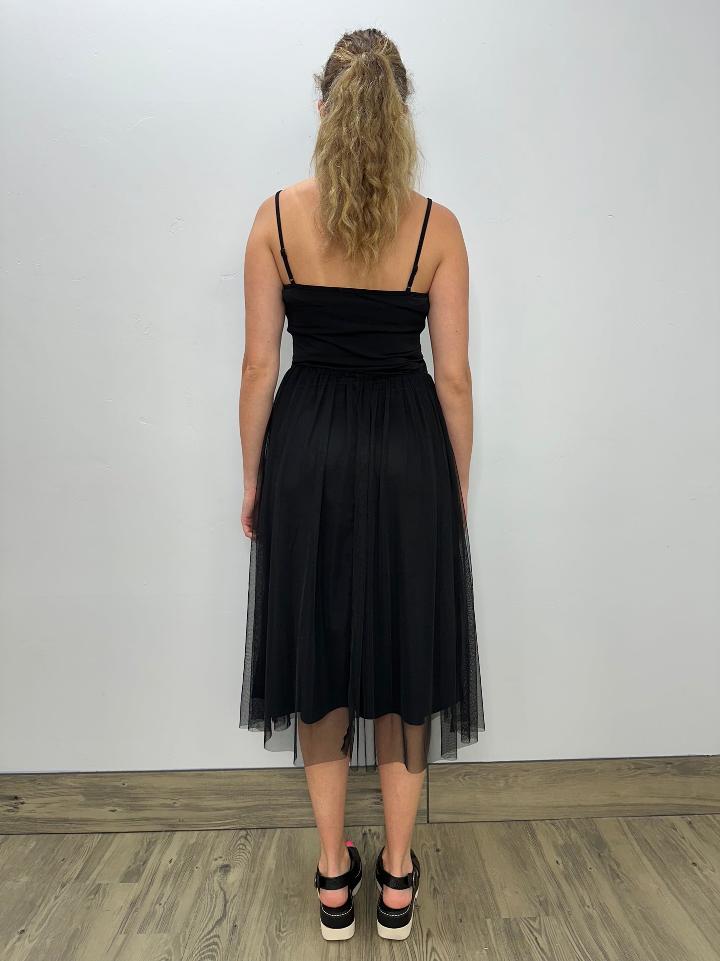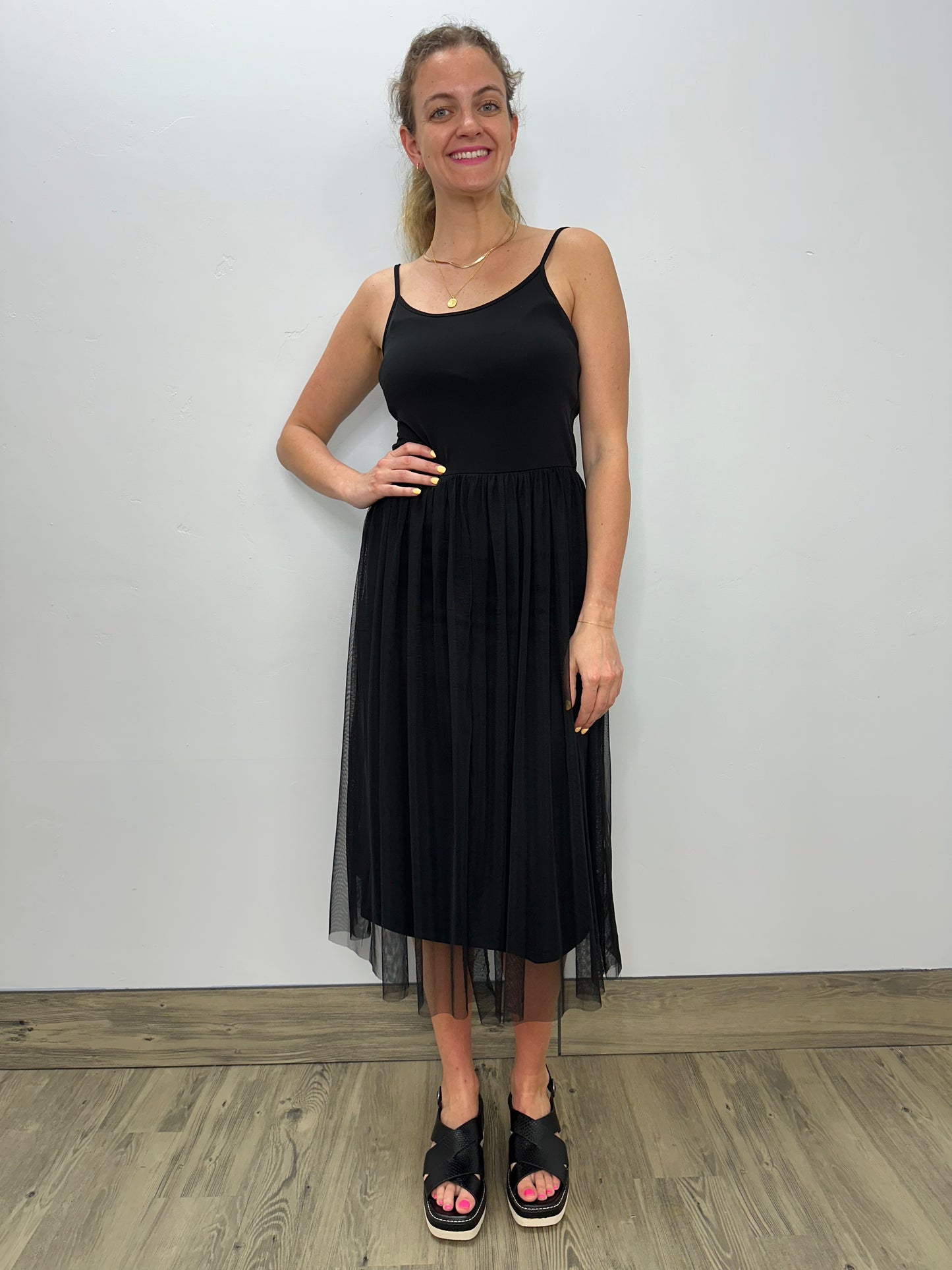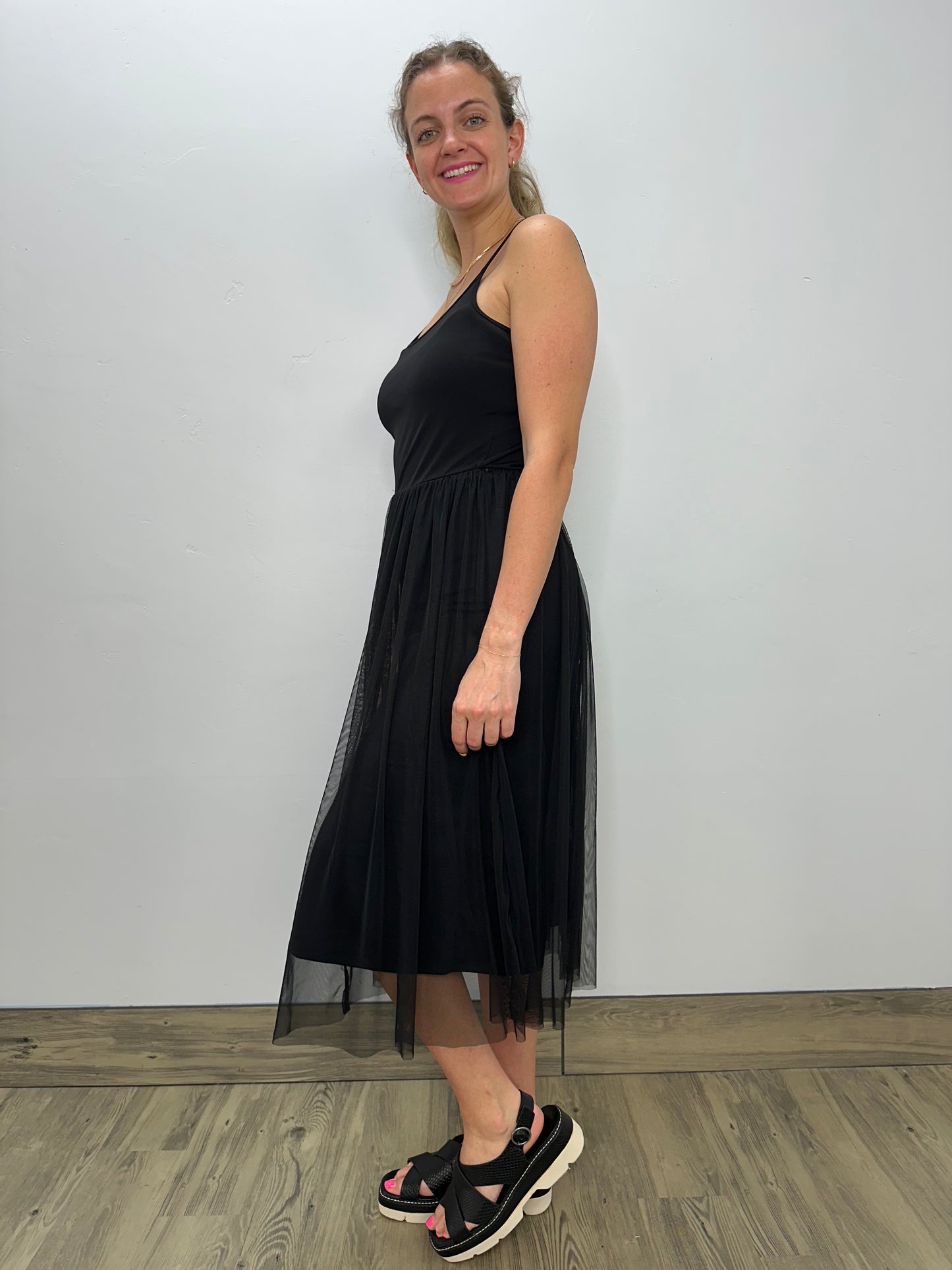 This elegant Black Tulle Sandy Dress is both stylish and fun. With adjustable straps, it offers a comfortable fit for any body type. The double layered design adds a touch of sophistication to this eye-catching piece. Make a statement and turn heads with this must-have dress!