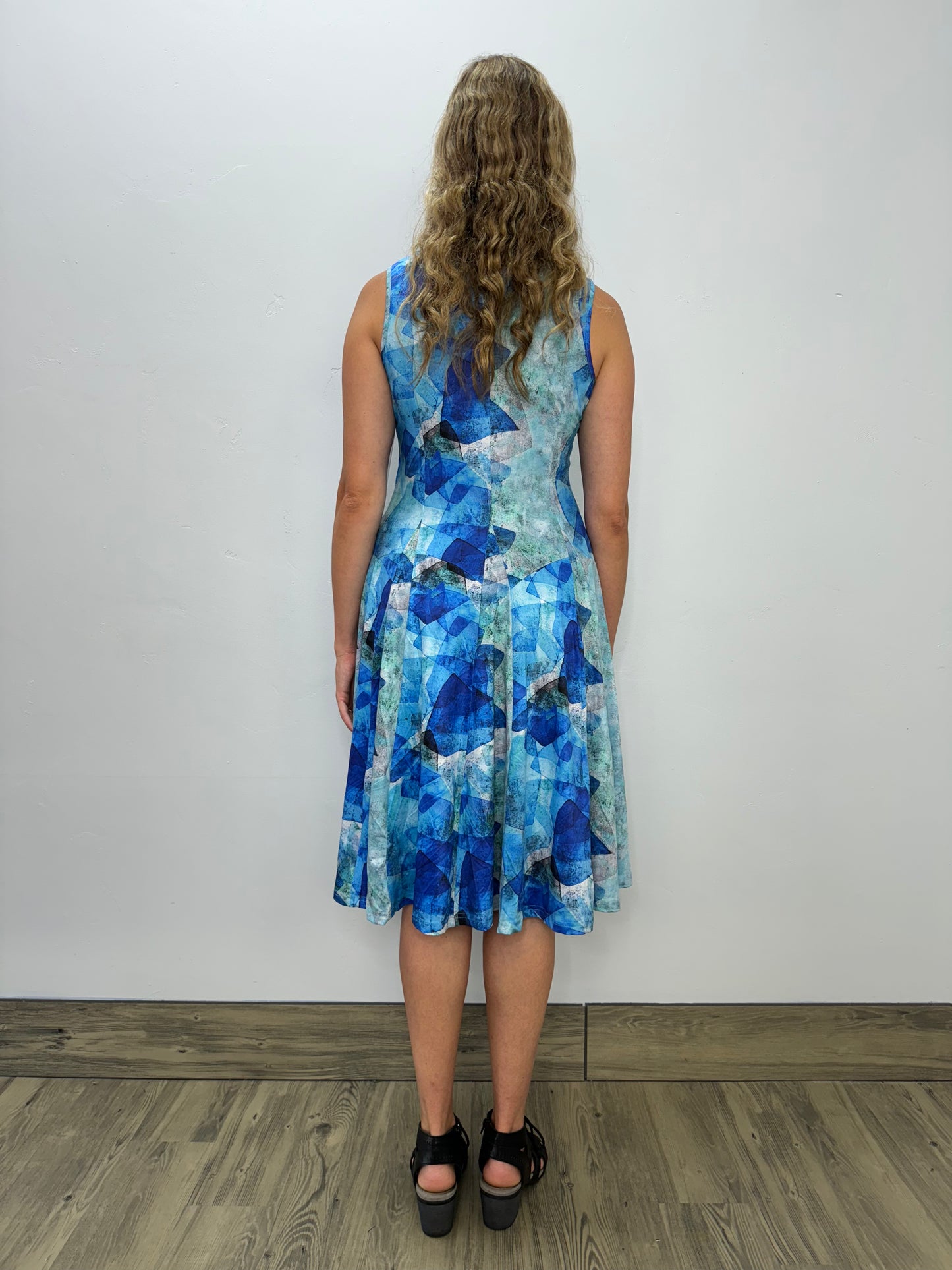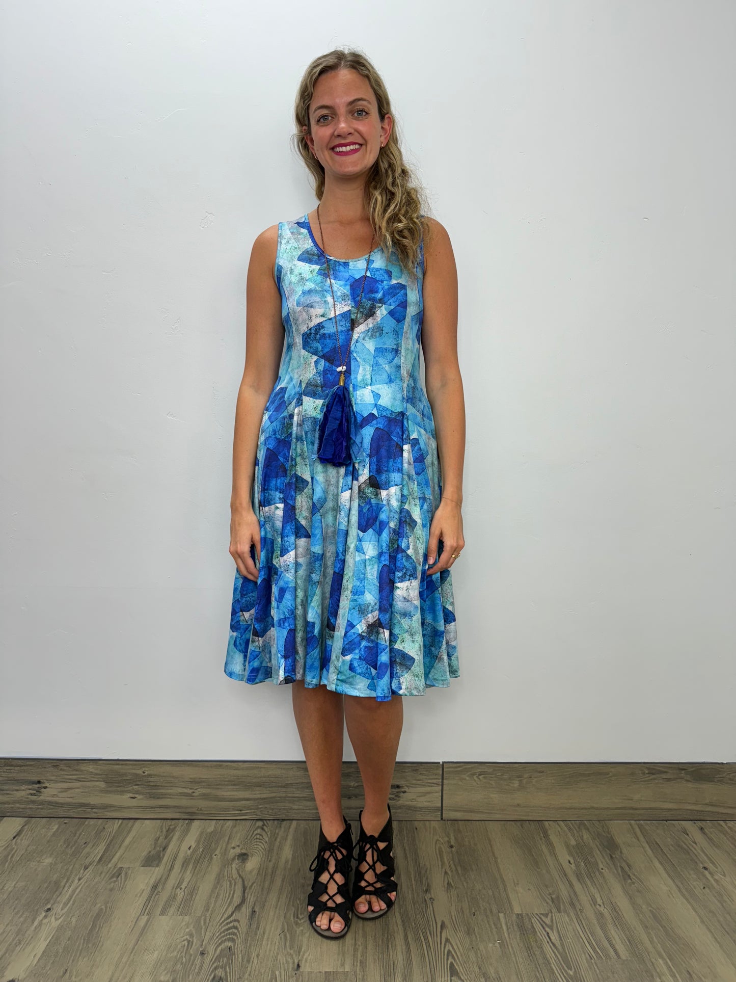 Blue Watercolor Sleeveless Scoop Neck Bubble Dress
