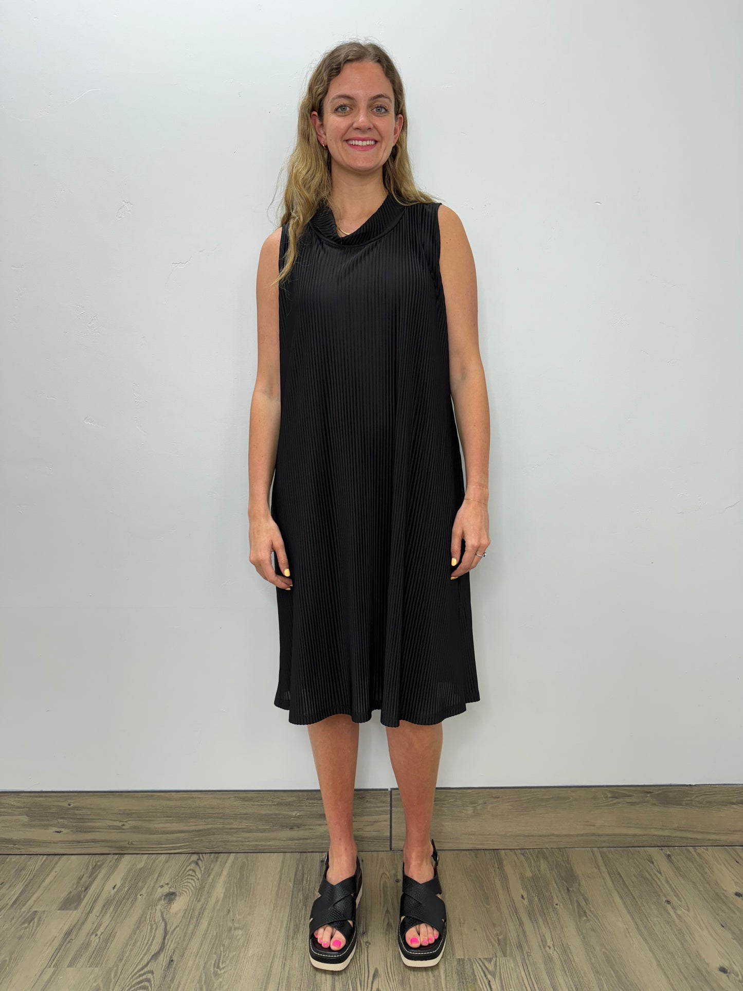 Night Shelly Dress is the epitome of luxury with its lightweight and beautifully ribbed fabric that will make you feel as soft as butter. The sleeveless design adds a touch of elegance to this must-have dress. Elevate your evening with the Night Shelly Dress.