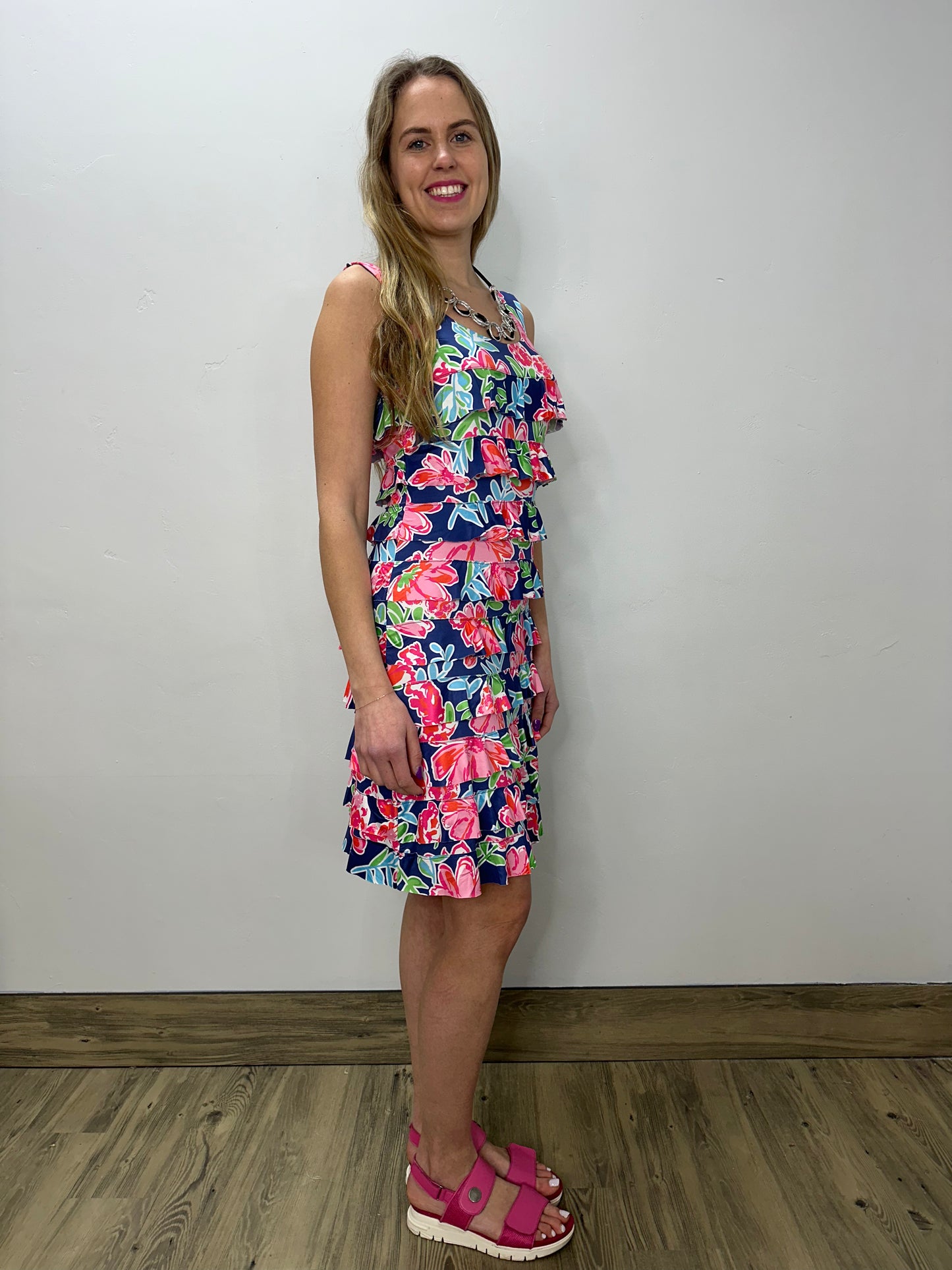 Dance the night away in style with our Blue and Pink Floral Pattern Sleeveless Mesh Ruffle Dress! Designed to flatter your figure and true to size, this Tango Mango dress is the perfect choice for a fun and stylish evening. Get ready to Cha-Cha in this eye-catching dress!