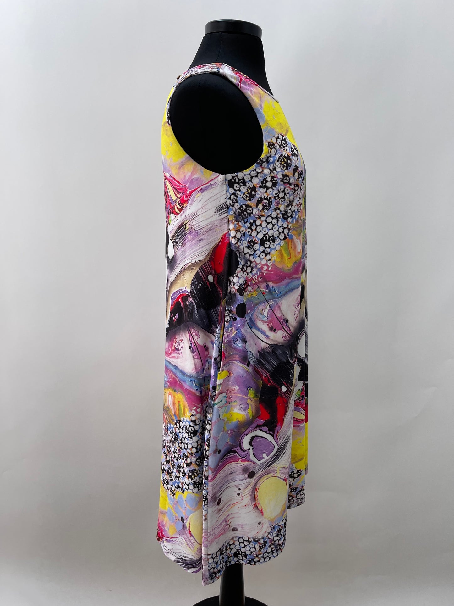 Tango Mango sleeveless dress with keyhole back button closure. This adorable dress also has side pockets... our FAVORITE! This sleeveless dress is perfect for the summer. The straps are thick enough to hide a bra strap.