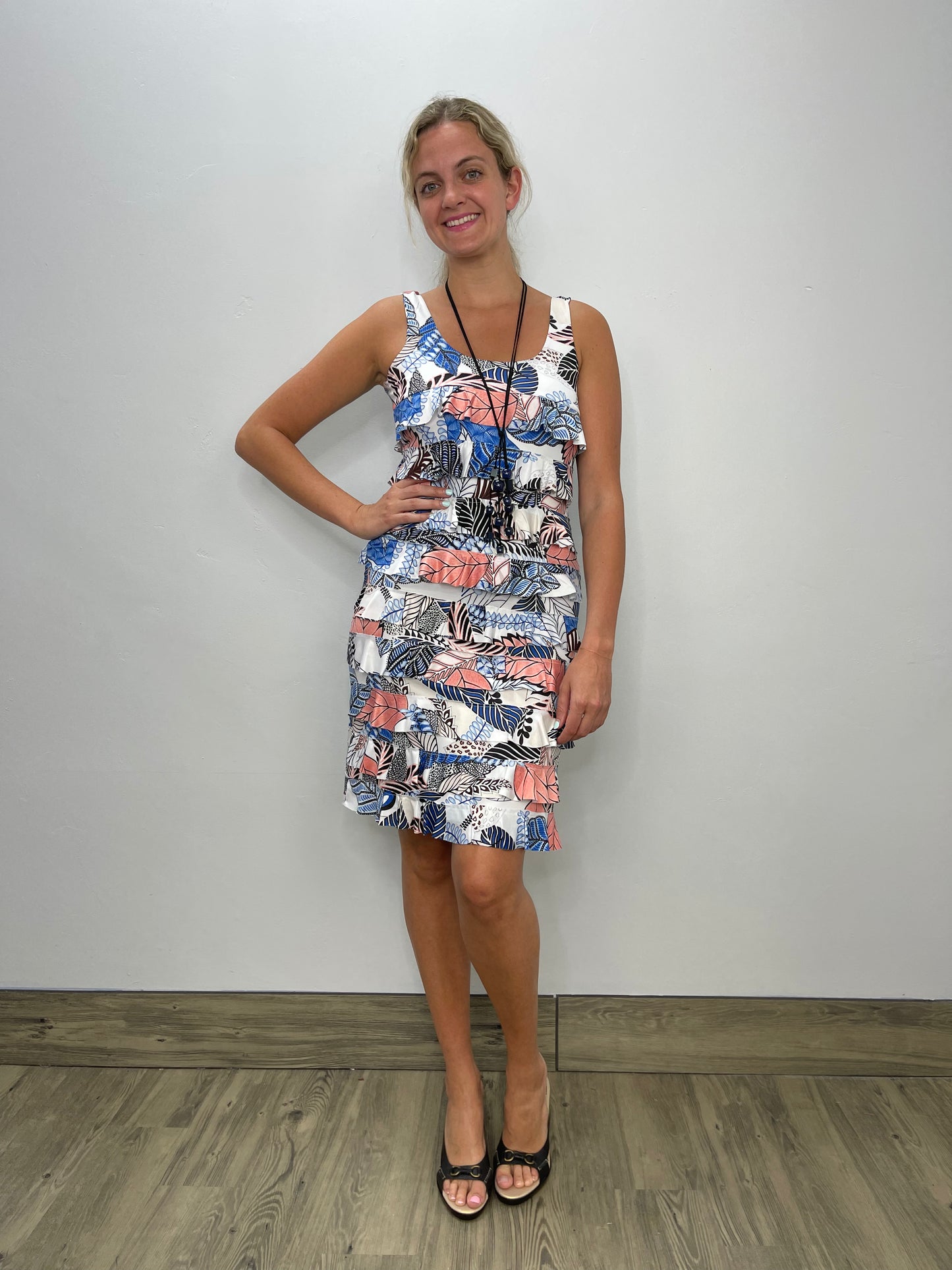 Beautifully crafted, this Coral Pattern Sleeveless Ruffle Dress is the perfect way to express your unique style. The dress features a stunning coral and blue leaf pattern that will be sure to turn heads. Wear it alone if you're feeling adventurous, or with a cardigan if you need extra warmth - the choice is yours!