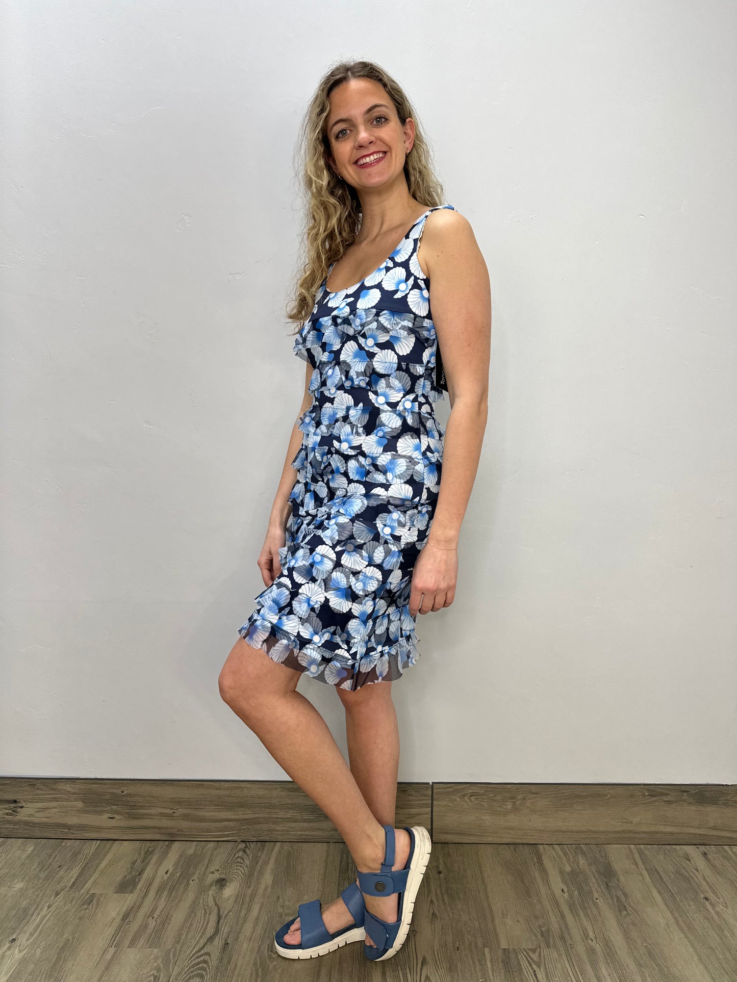 Seashell Pattern Sleeveless Mesh Ruffle Dress