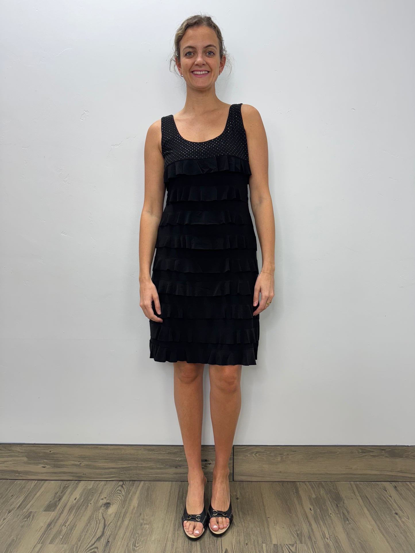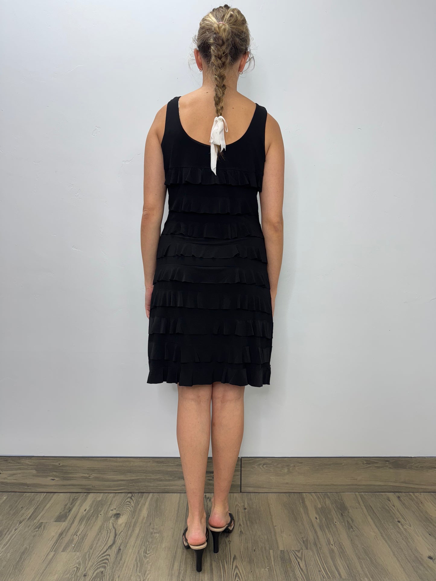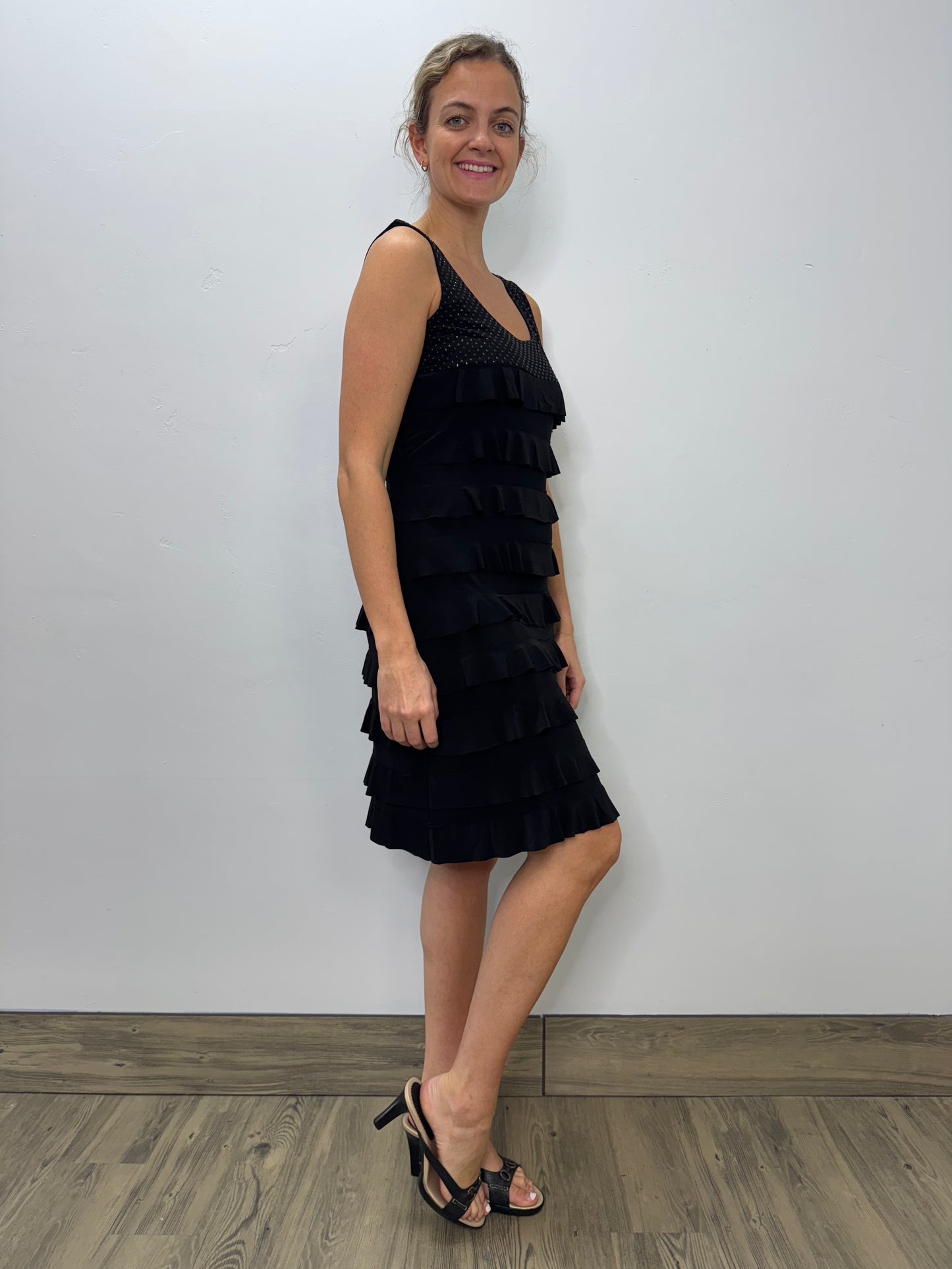 Sleeveless Black Ruffle Dress with Black Swarovski