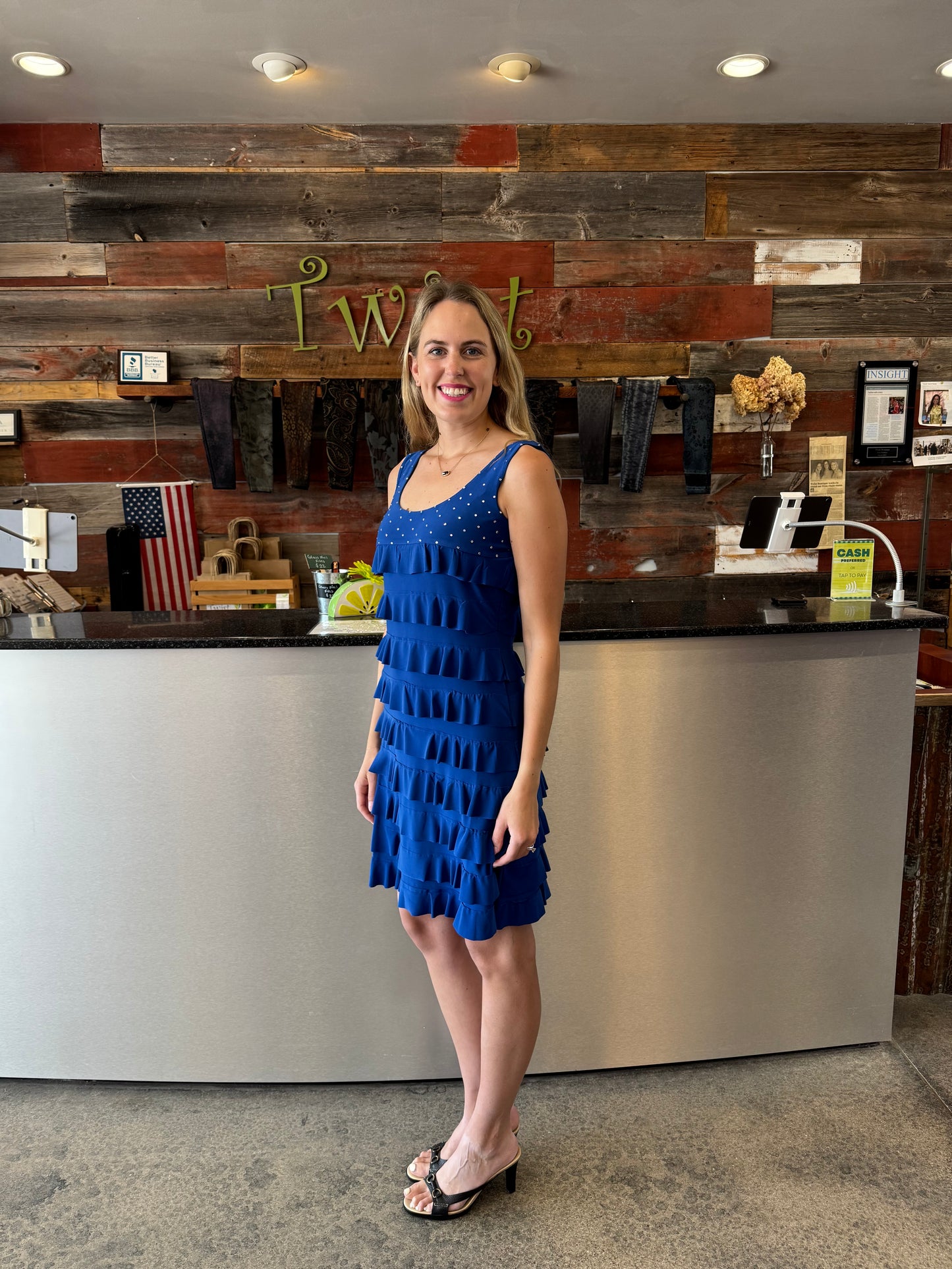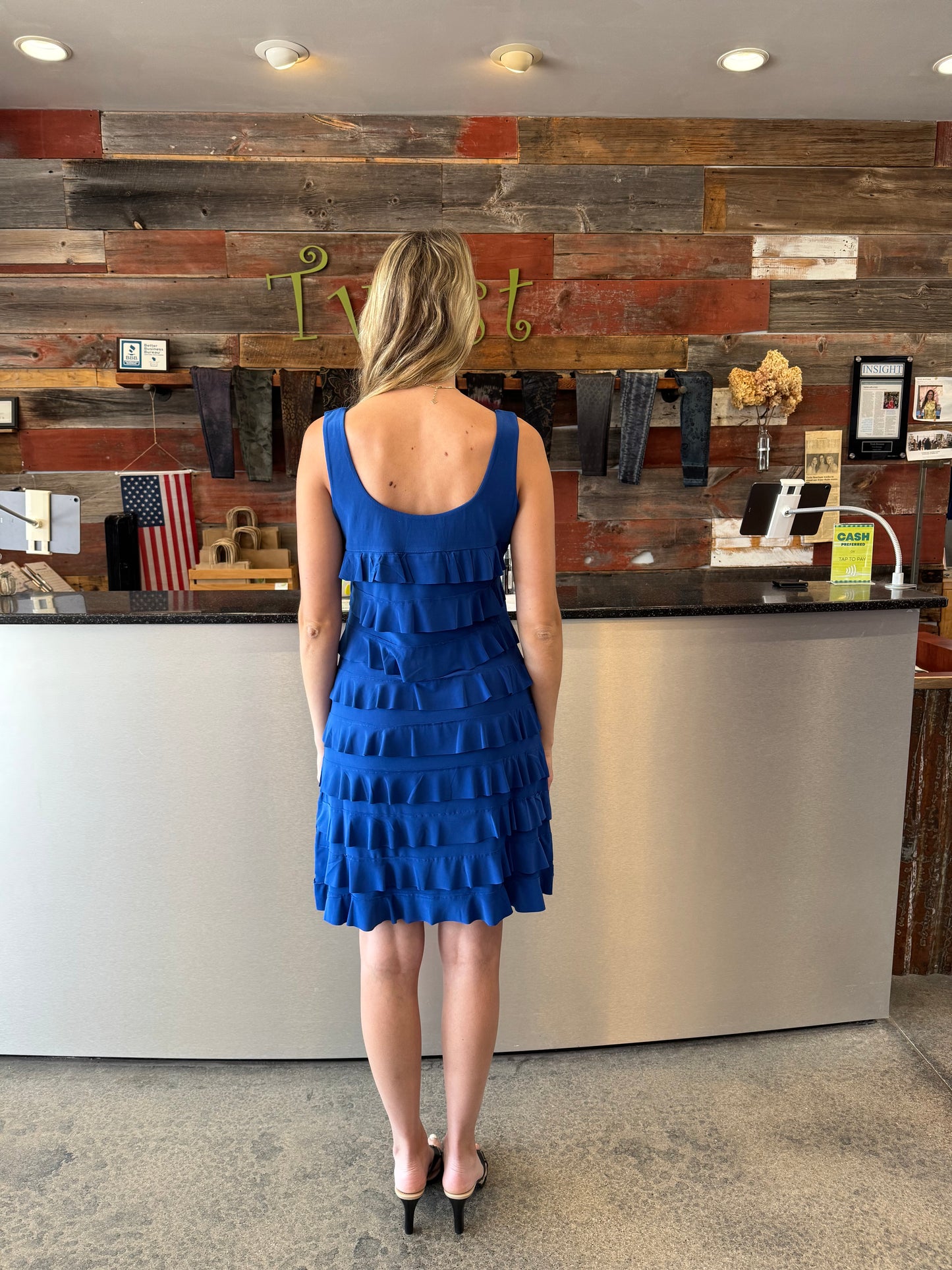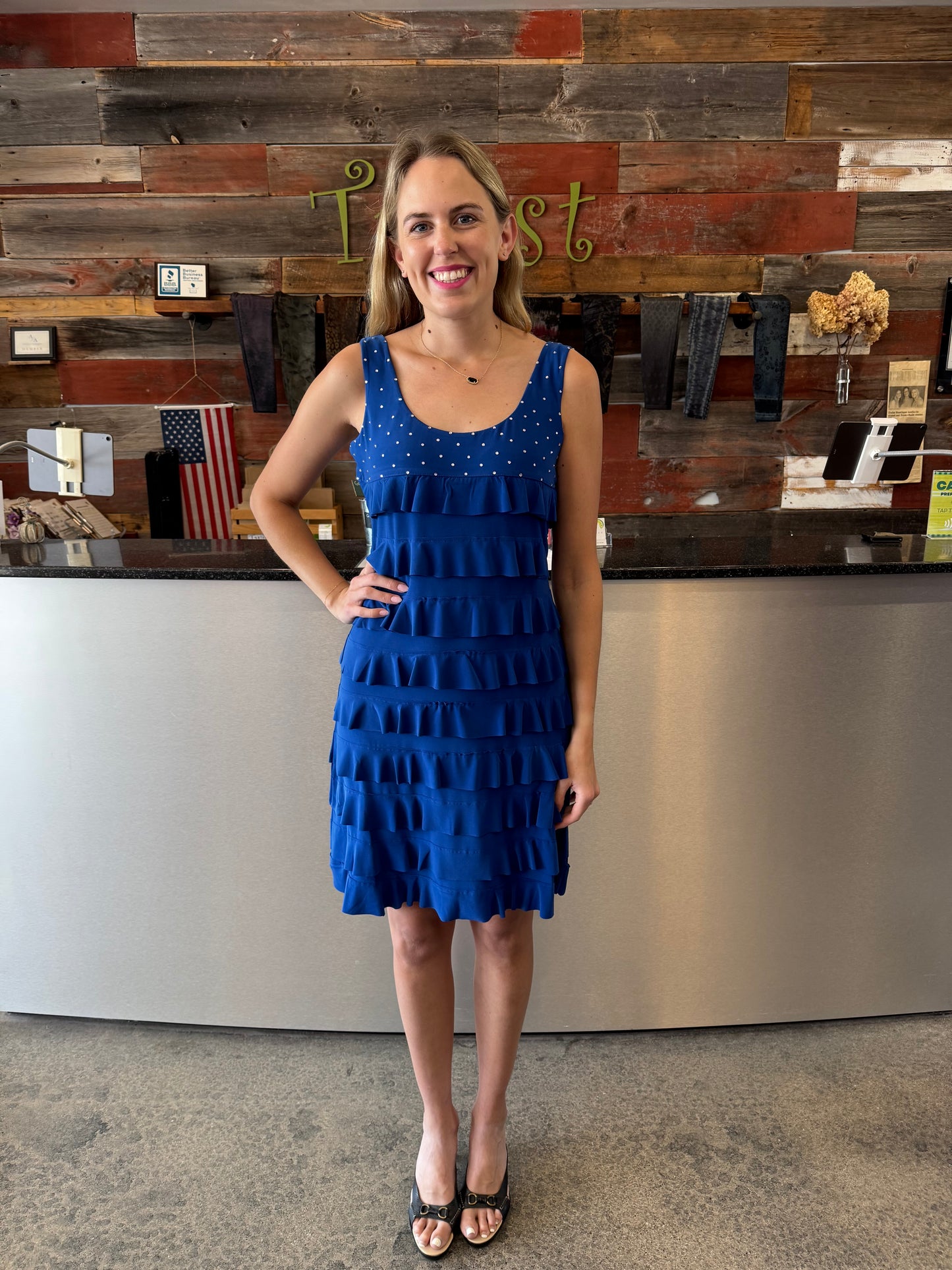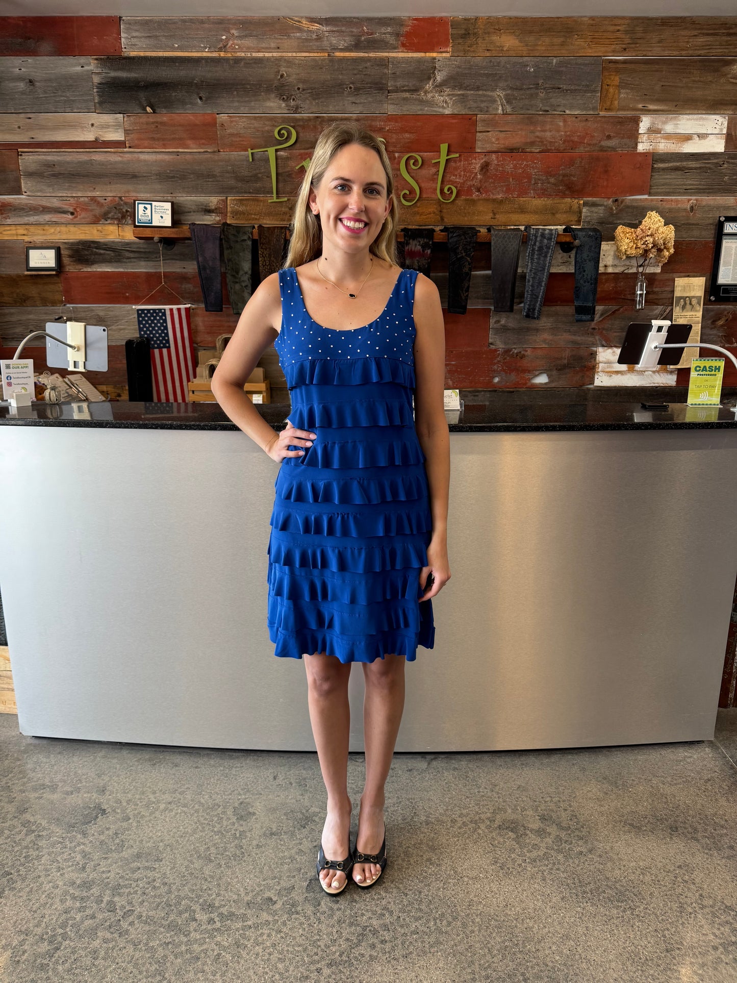 Sleeveless Royal Blue Ruffle Dress with Swarovski Crystals