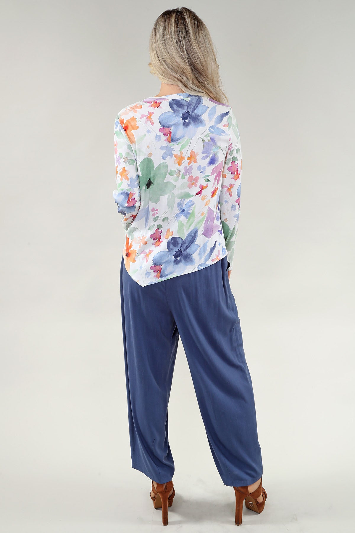 Embrace effortless charm with this delightful long sleeve top featuring a whimsical watercolor floral pattern. The soft, cozy fabric wraps you in comfort while the scoop neckline offers a flattering, relaxed silhouette. An eye-catching asymmetric hemline with side tie detail adds playful movement and visual interest to your everyday look. Whether you're dressing up or keeping it casual, this adorable piece brings personality and warmth to any outfit.